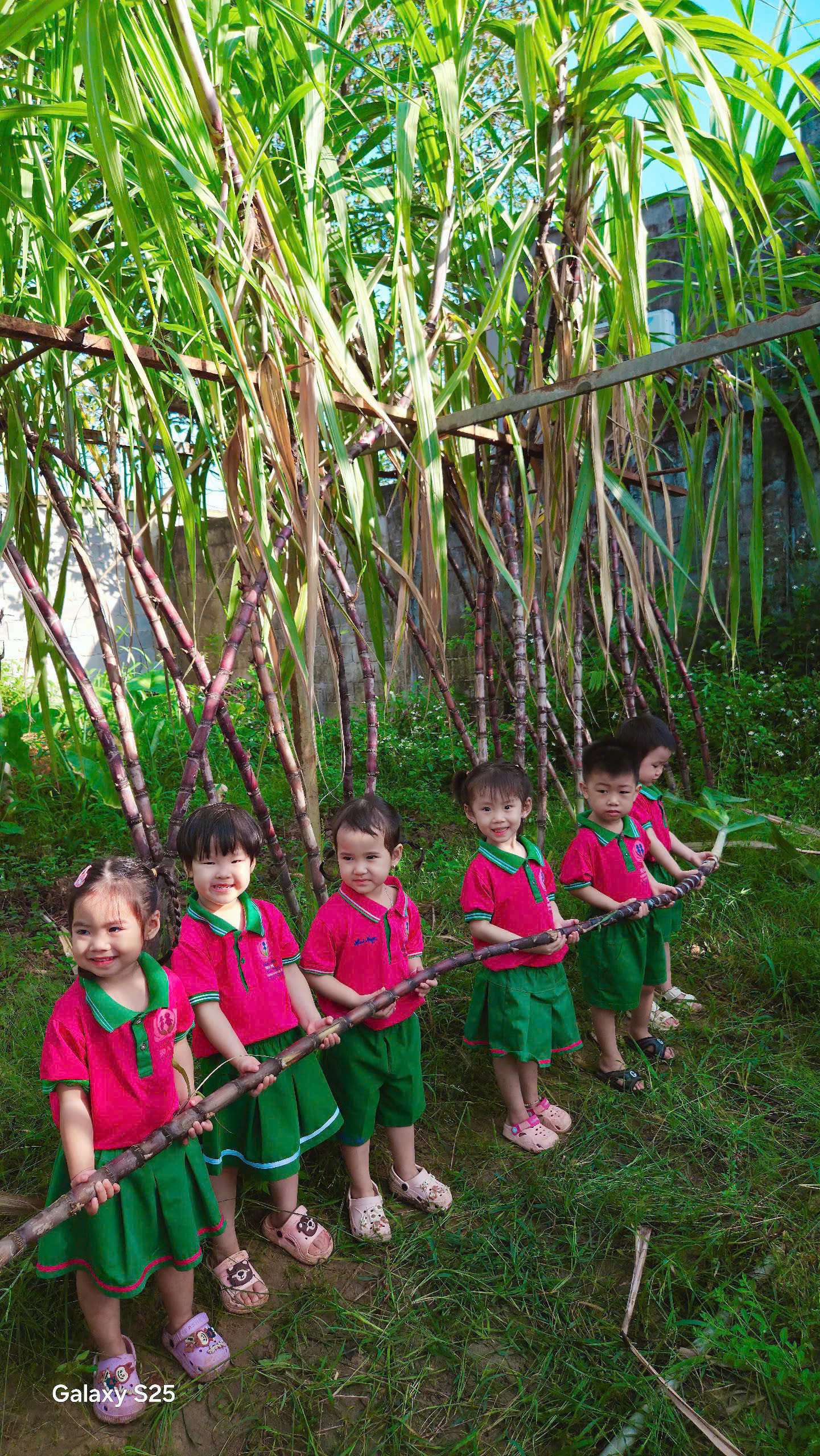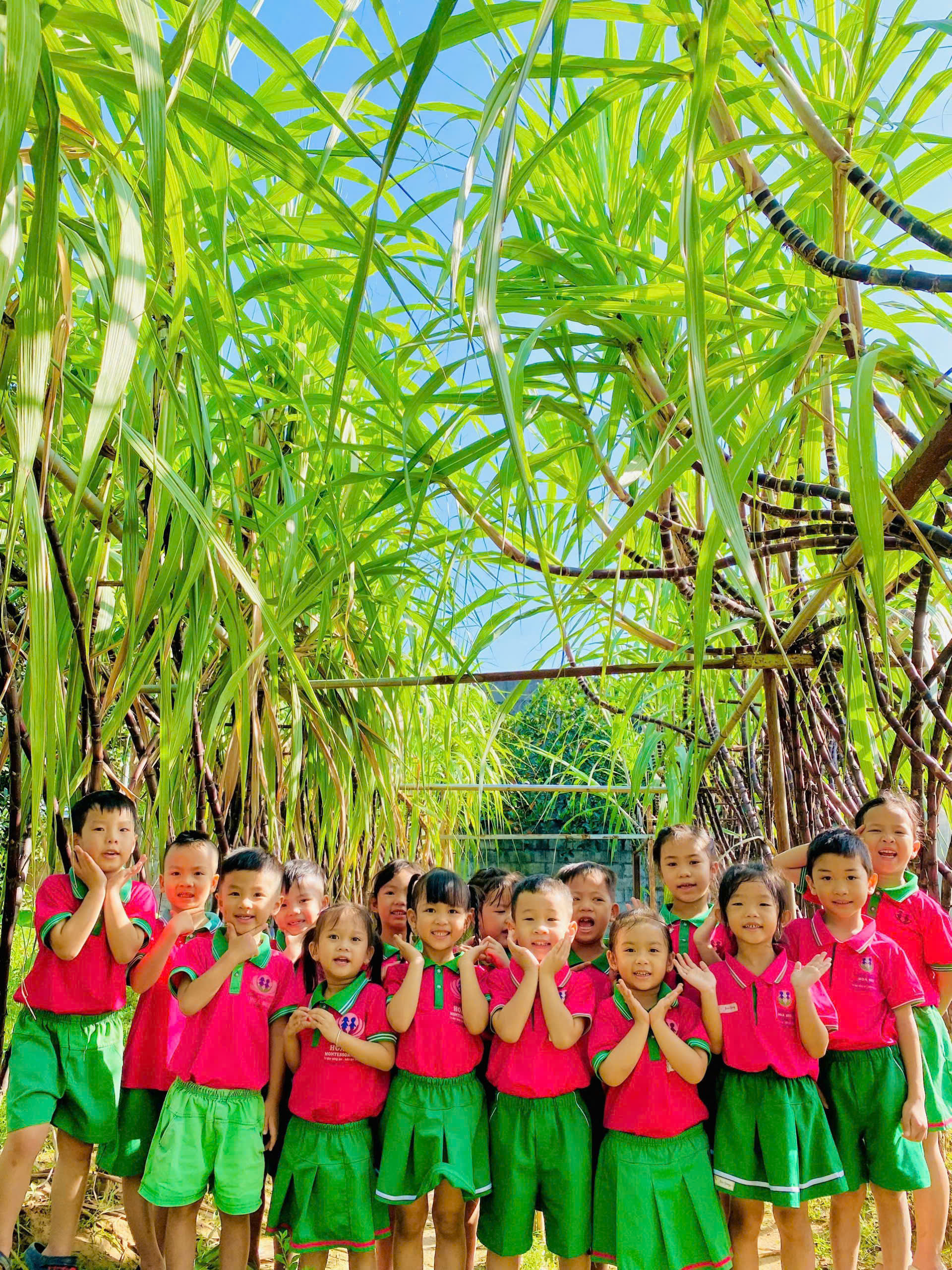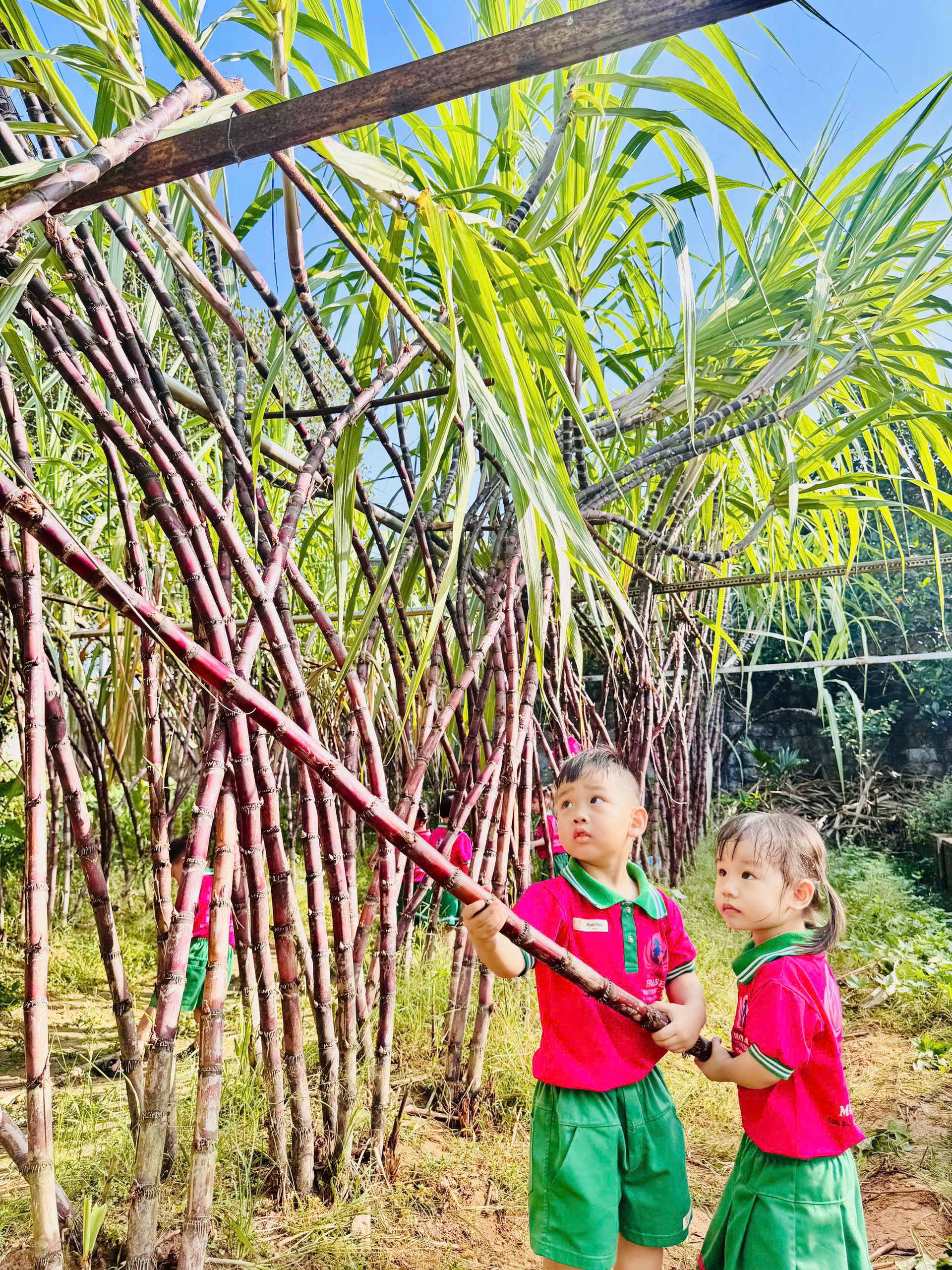 🎋🎋Các bé được trải nghiệm thu hoạch mía, tự tay chọn những cây mía thật ngọt rồi cùng cô chặt và mang về làm quà cho gia đình.
