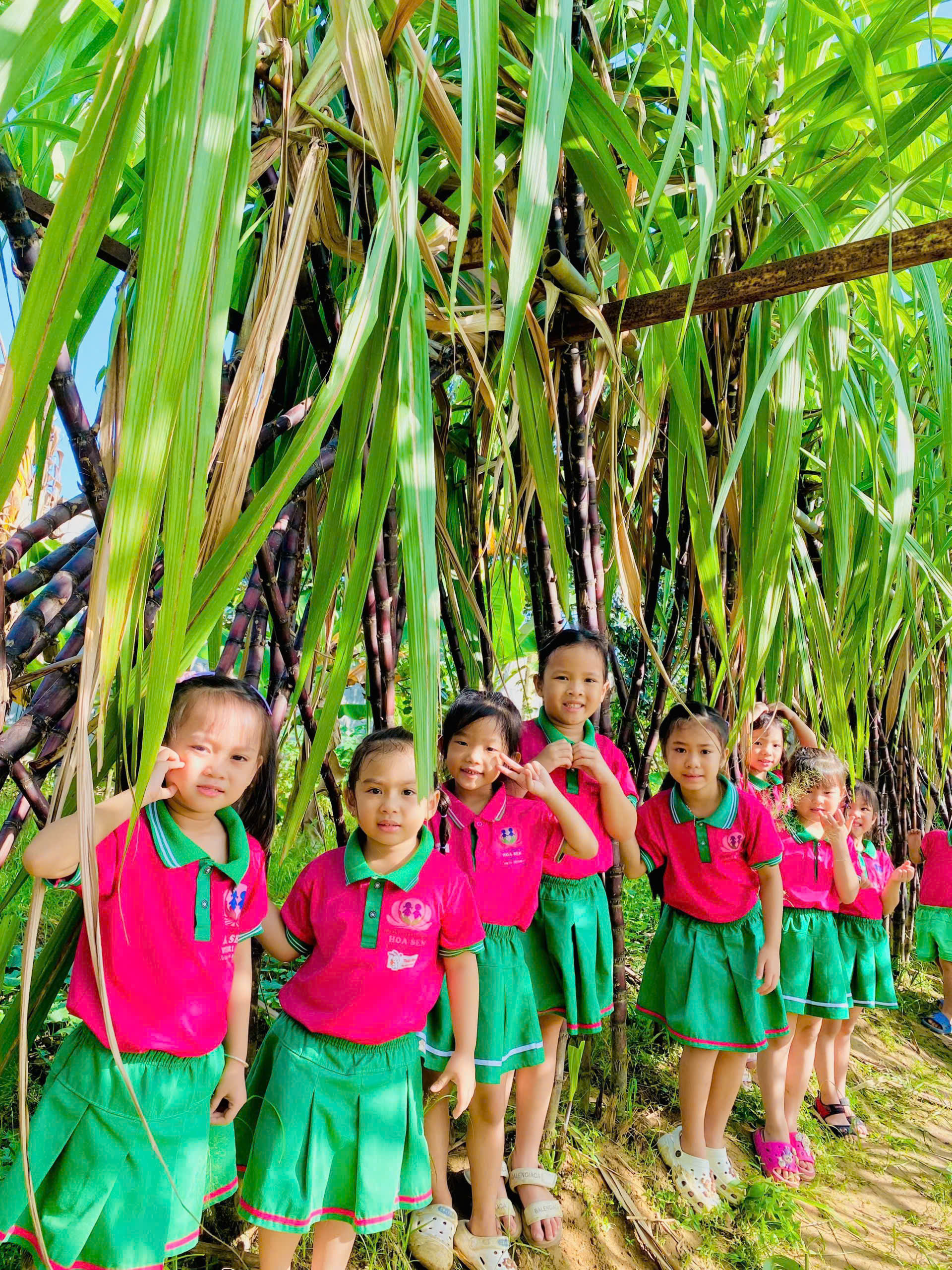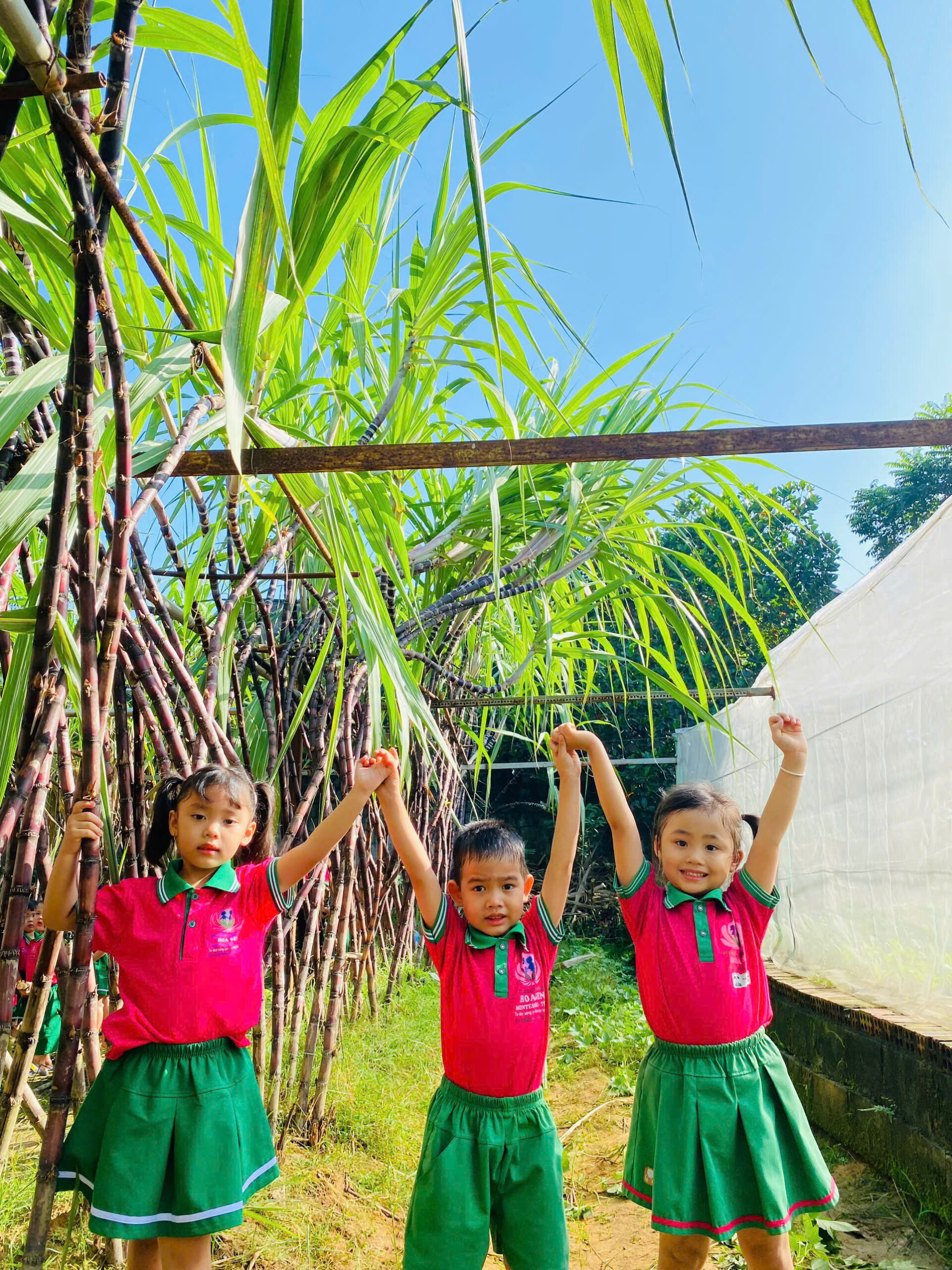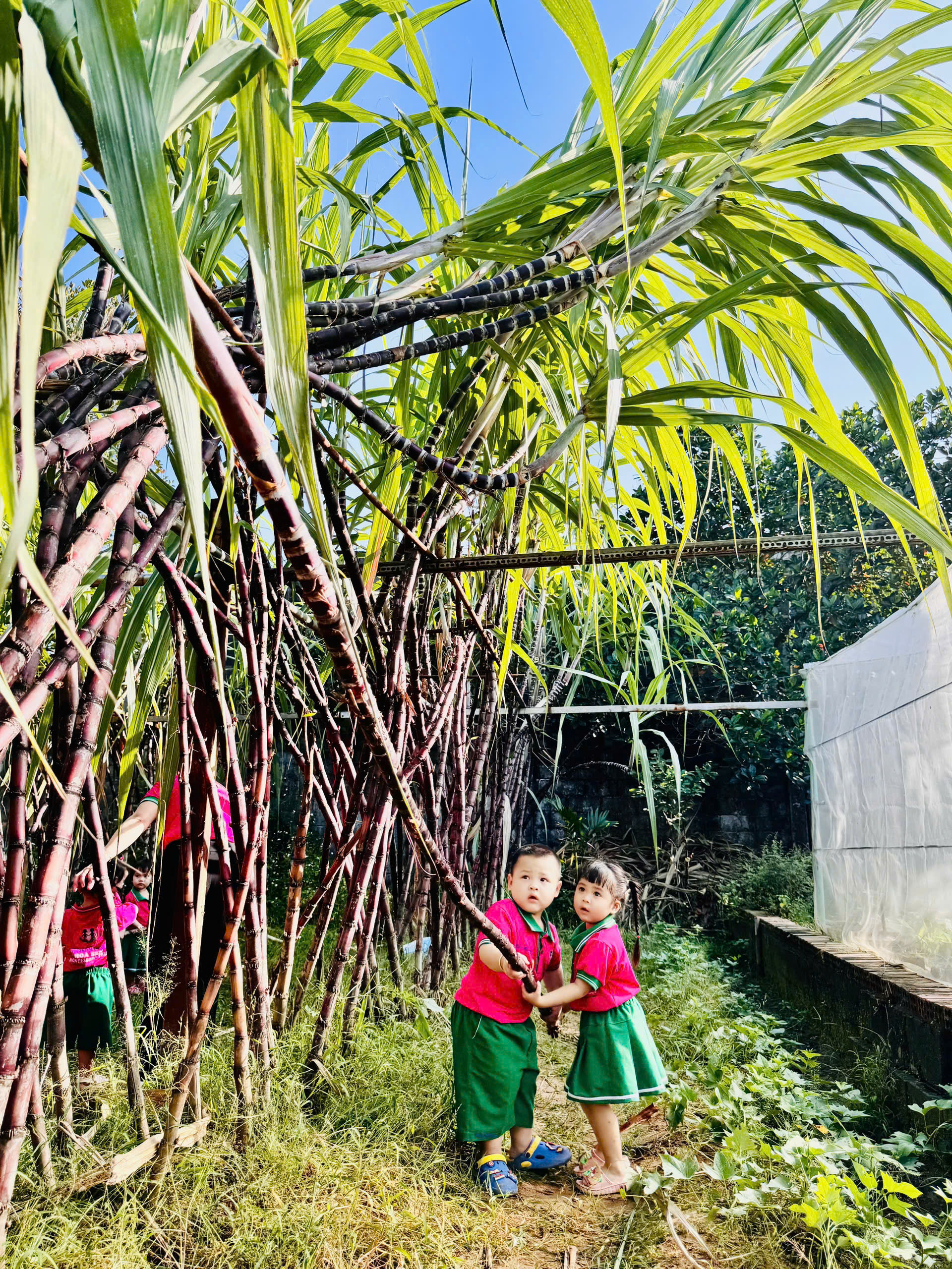 🎋🎋Các bé được trải nghiệm thu hoạch mía, tự tay chọn những cây mía thật ngọt rồi cùng cô chặt và mang về làm quà cho gia đình.