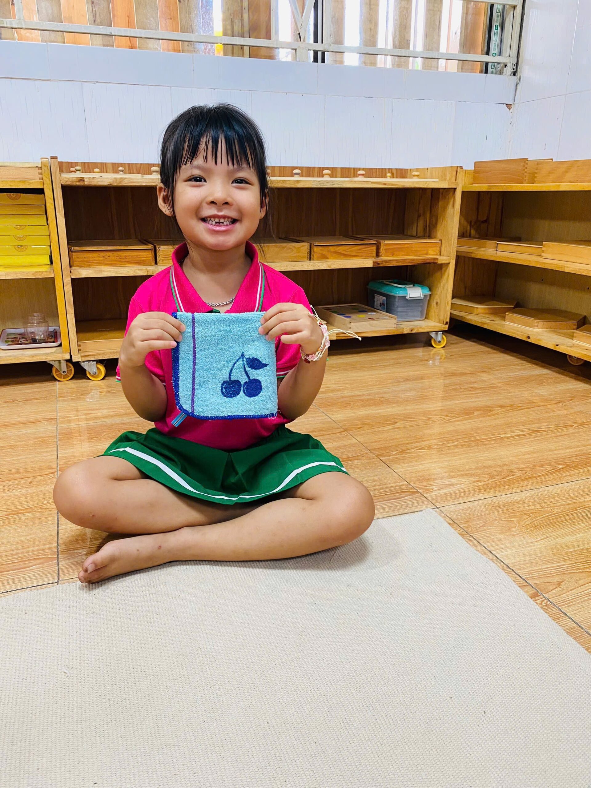 Không chỉ học cách gấp khăn gọn gàng, các bé còn học được tinh thần tự lập và ngăn nắp trong sinh hoạt hằng ngày 💪🌸