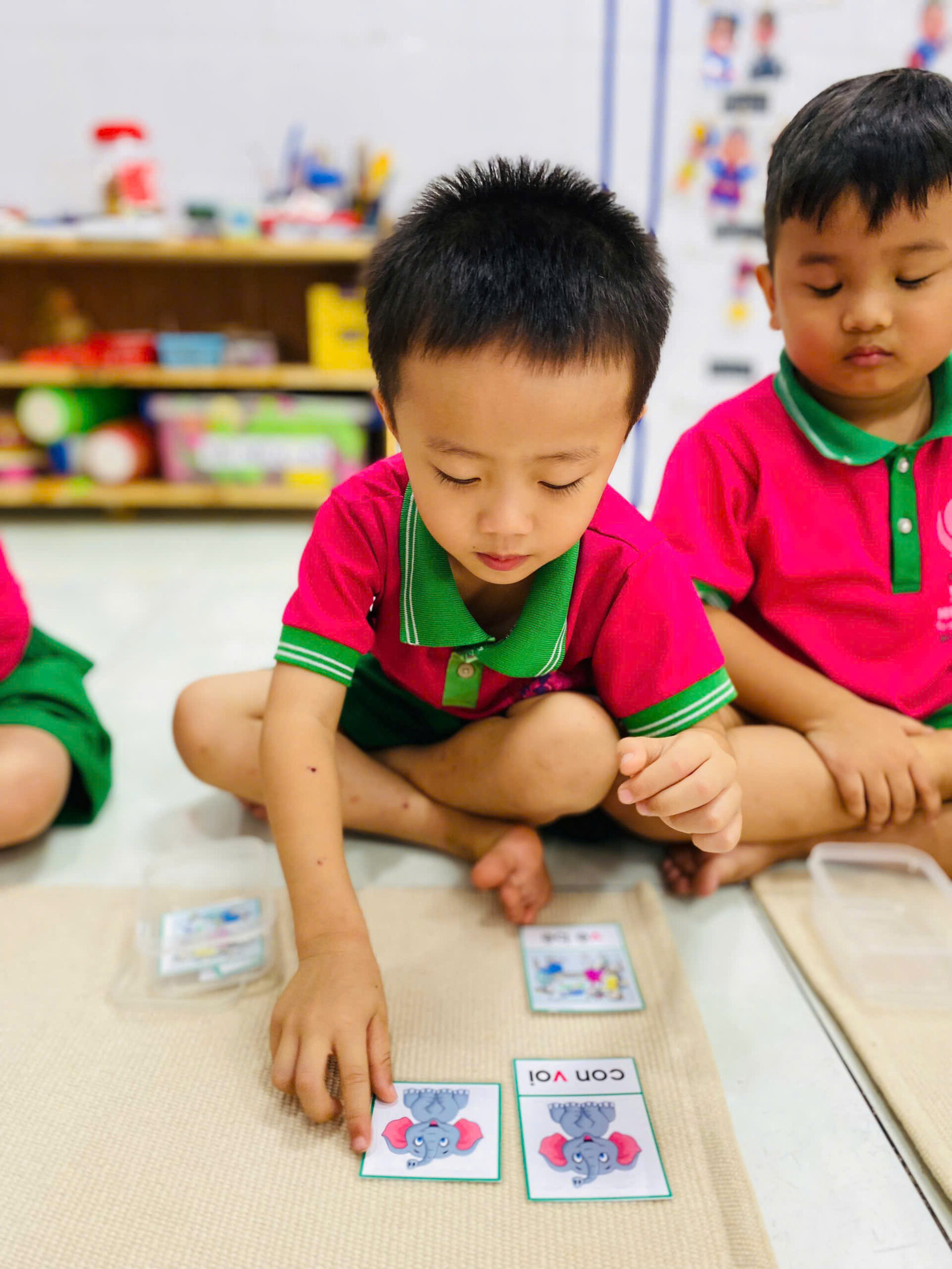 👦👧 Mỗi bé đều rất tập trung 😍, cẩn thận đặt từng tấm thẻ đúng vị trí 👍.