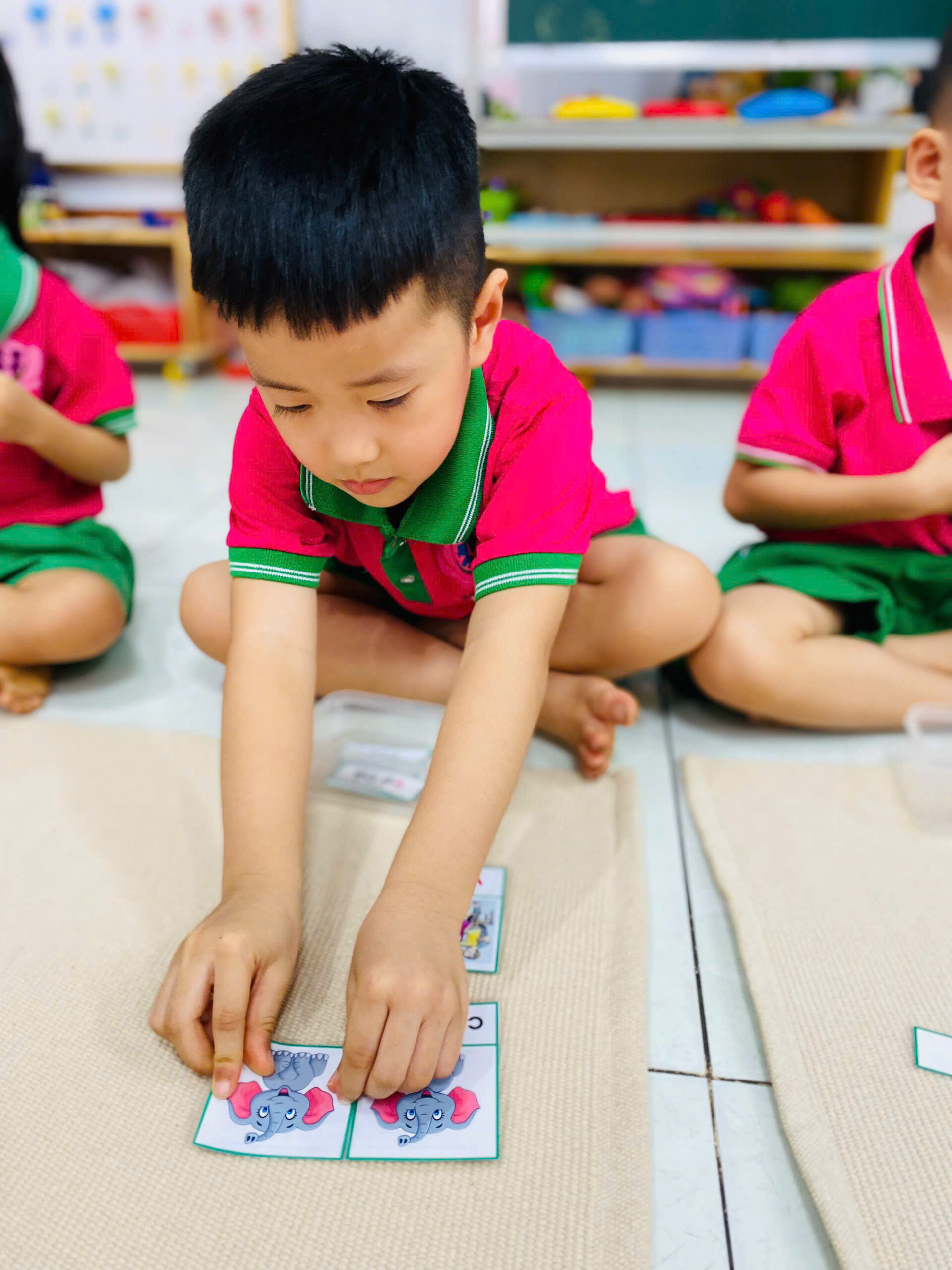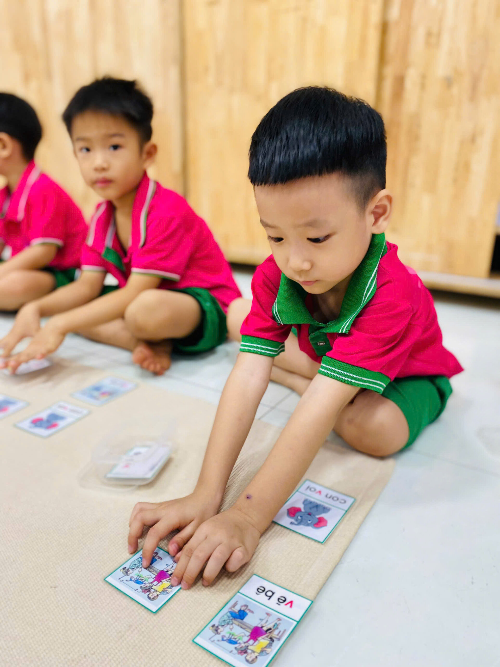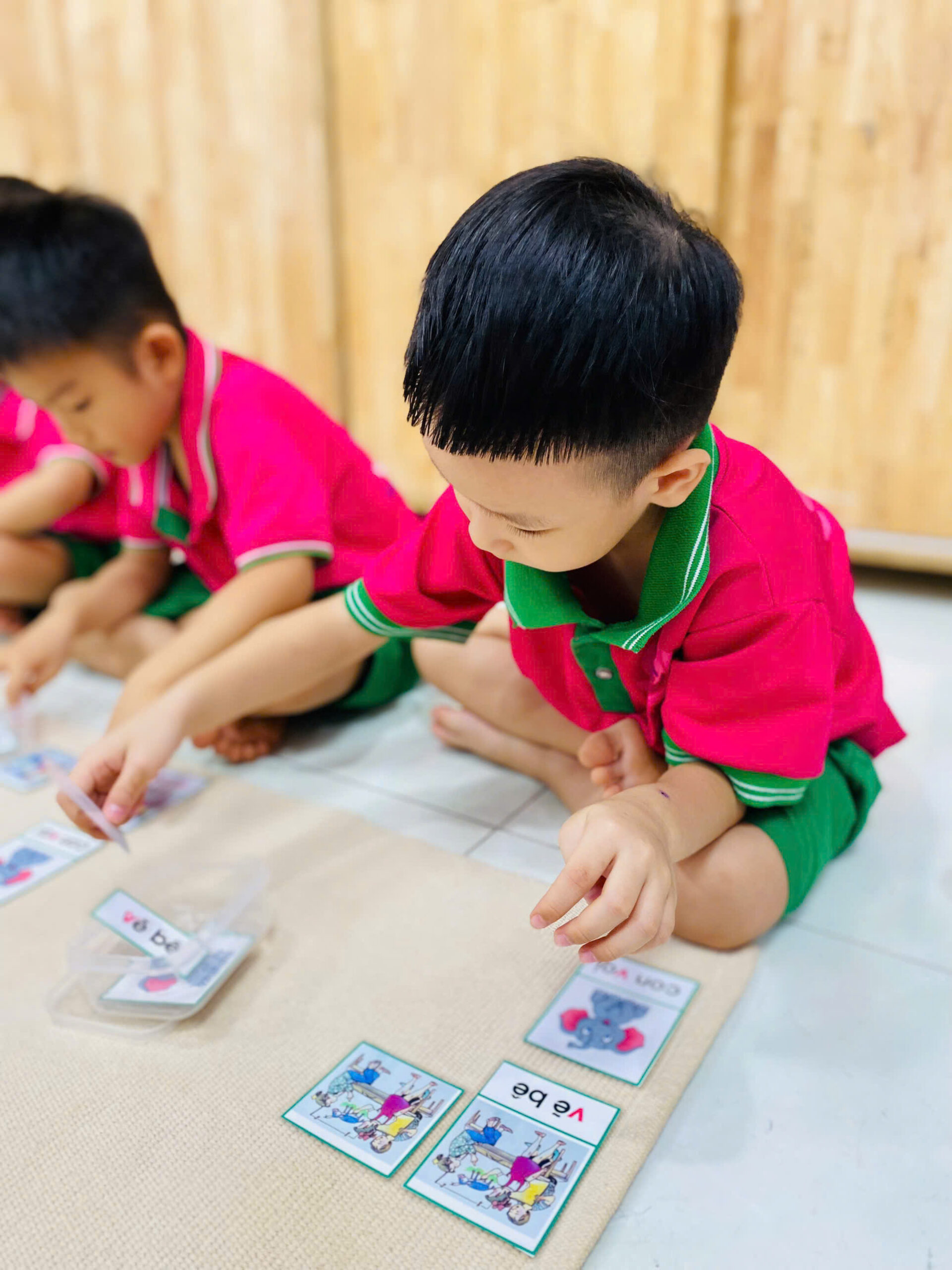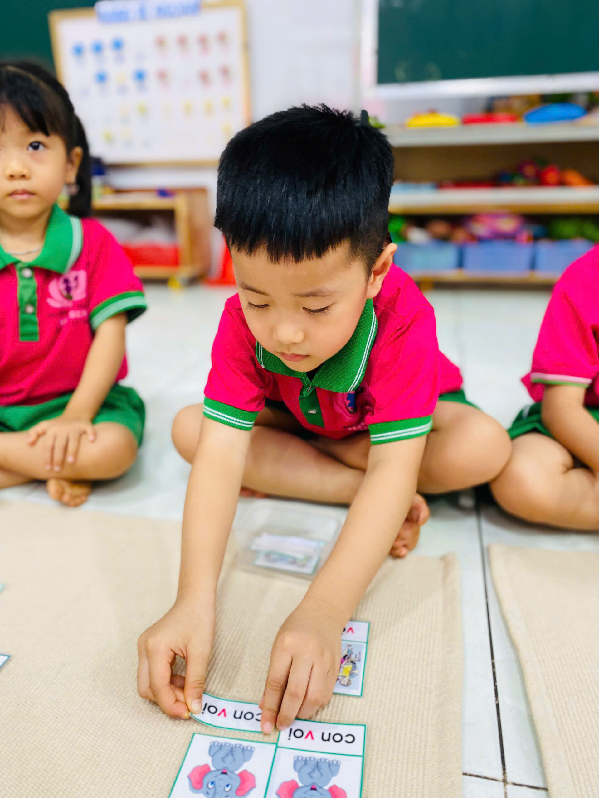 👦👧 Mỗi bé đều rất tập trung 😍, cẩn thận đặt từng tấm thẻ đúng vị trí 👍.