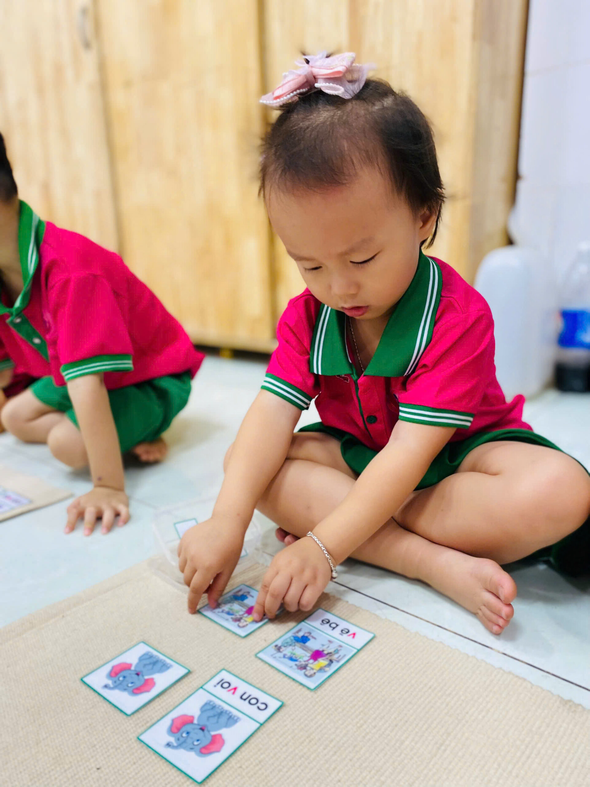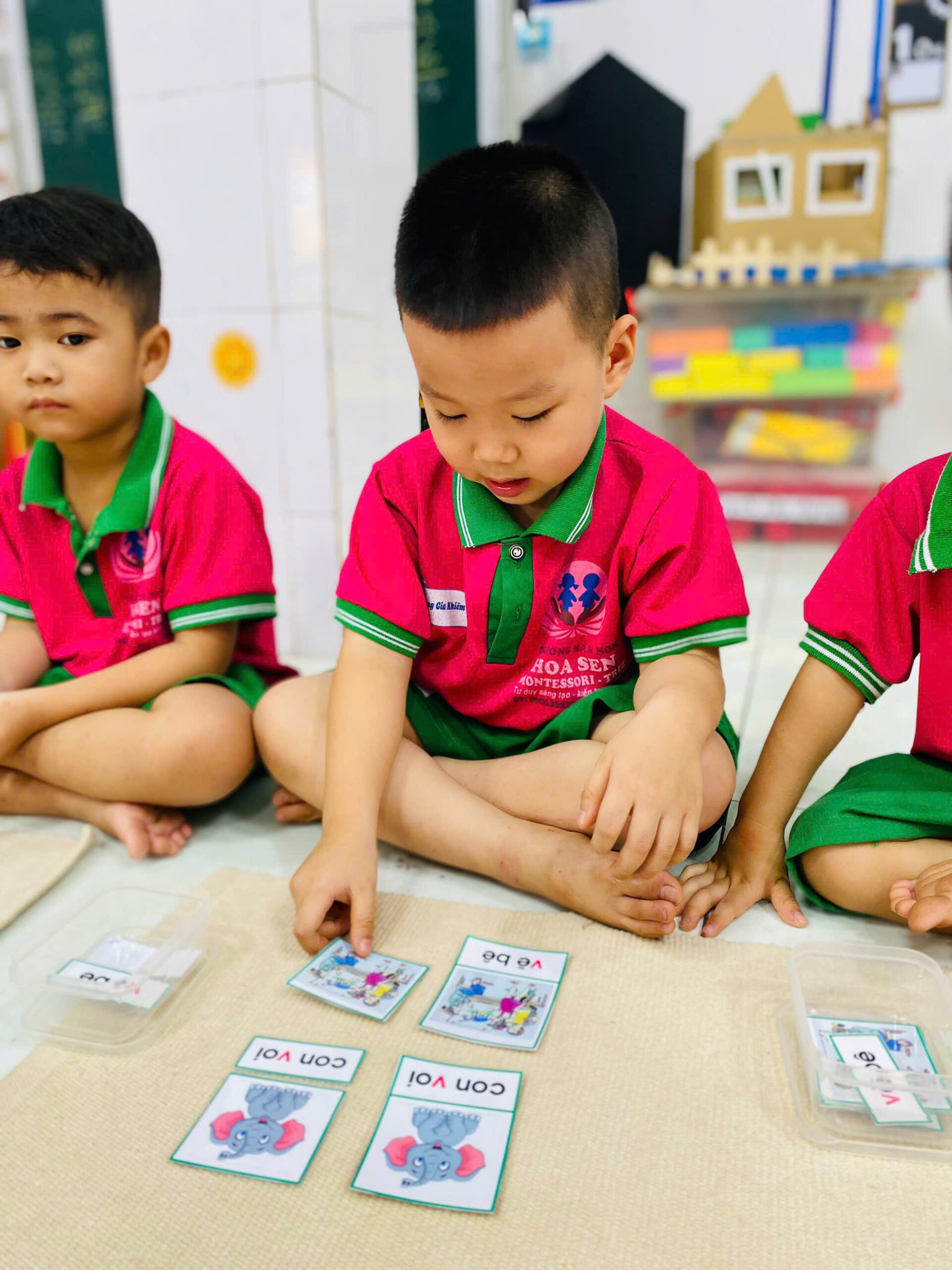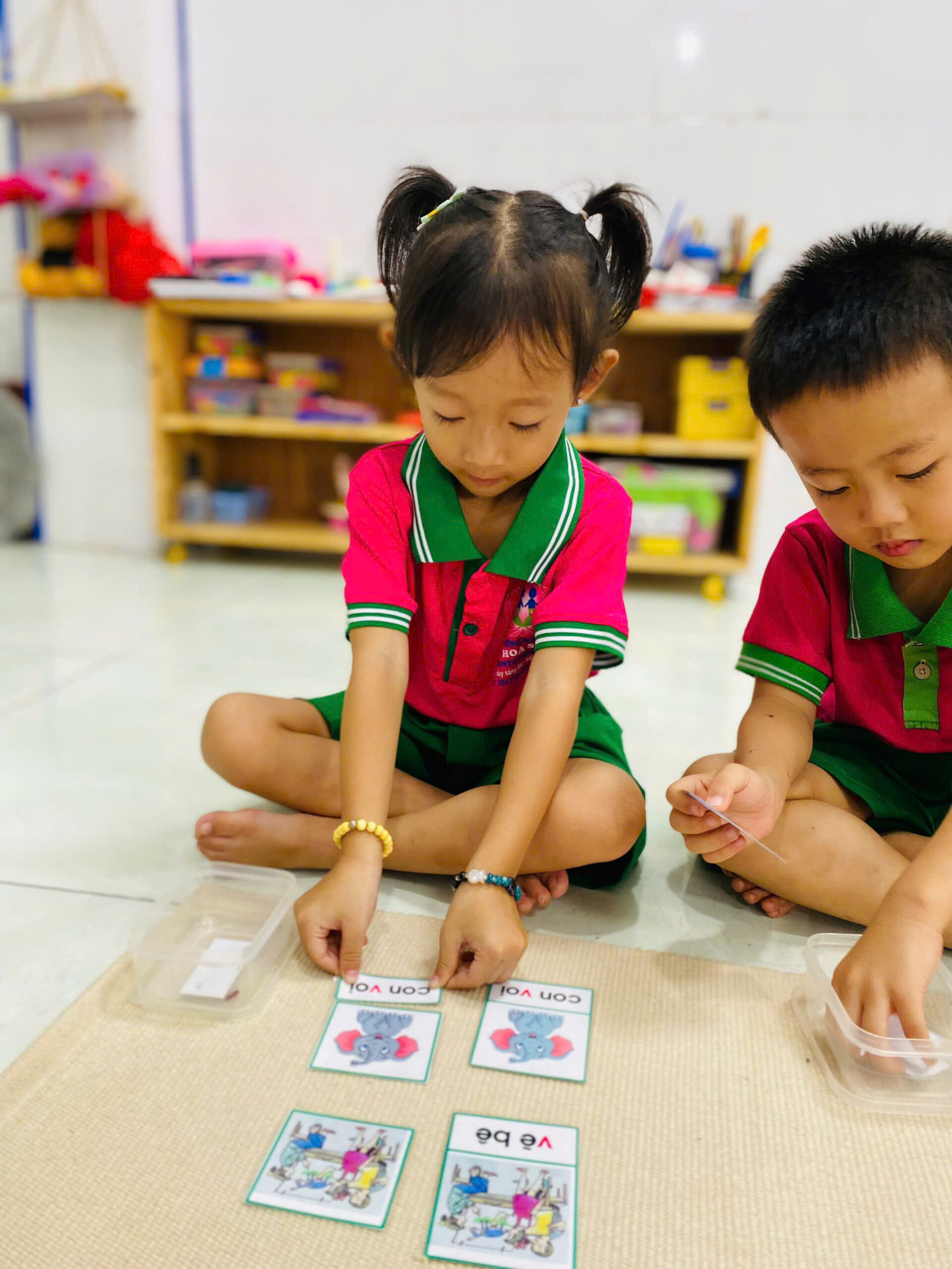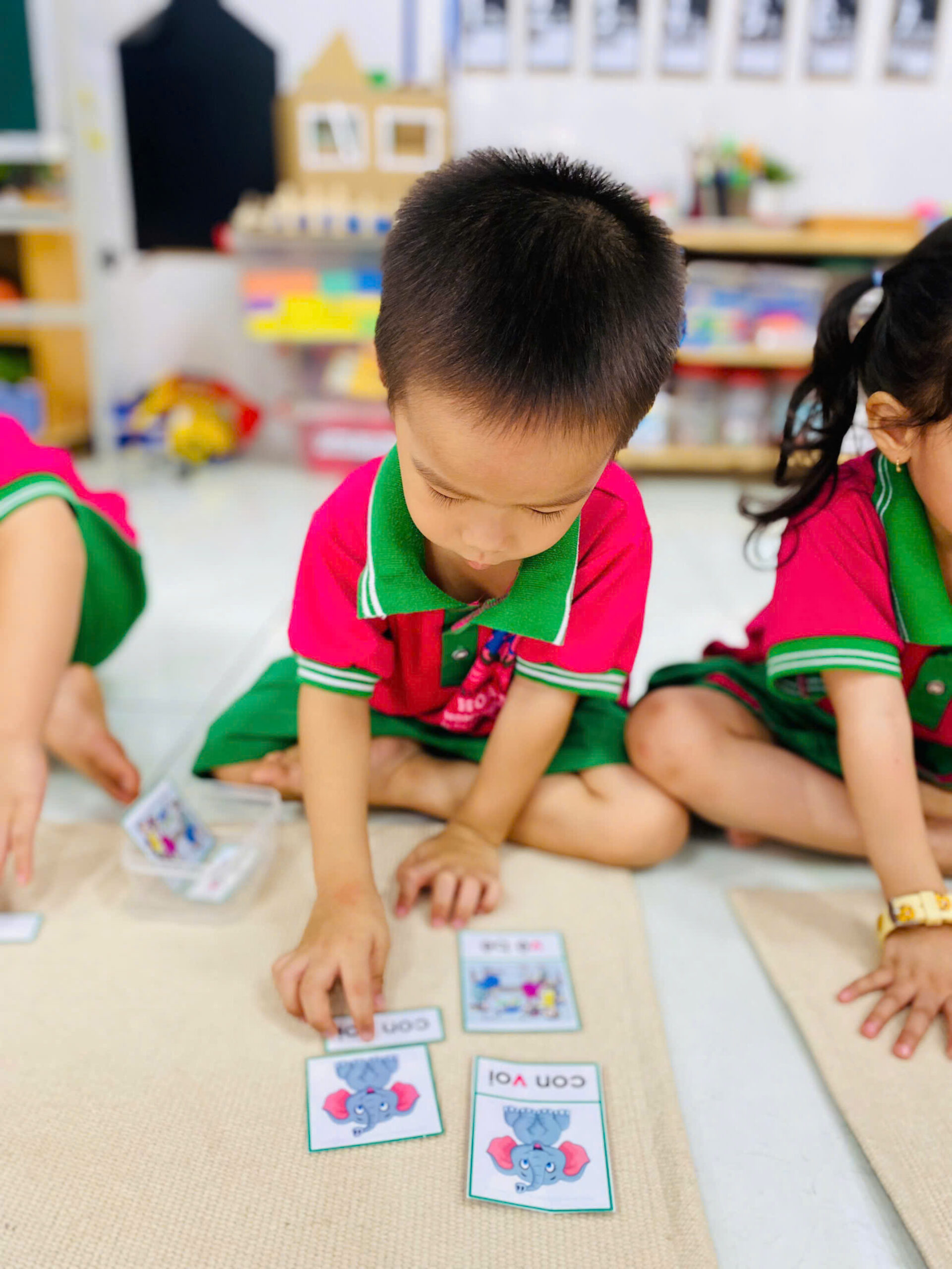 👦👧 Mỗi bé đều rất tập trung 😍, cẩn thận đặt từng tấm thẻ đúng vị trí 👍.