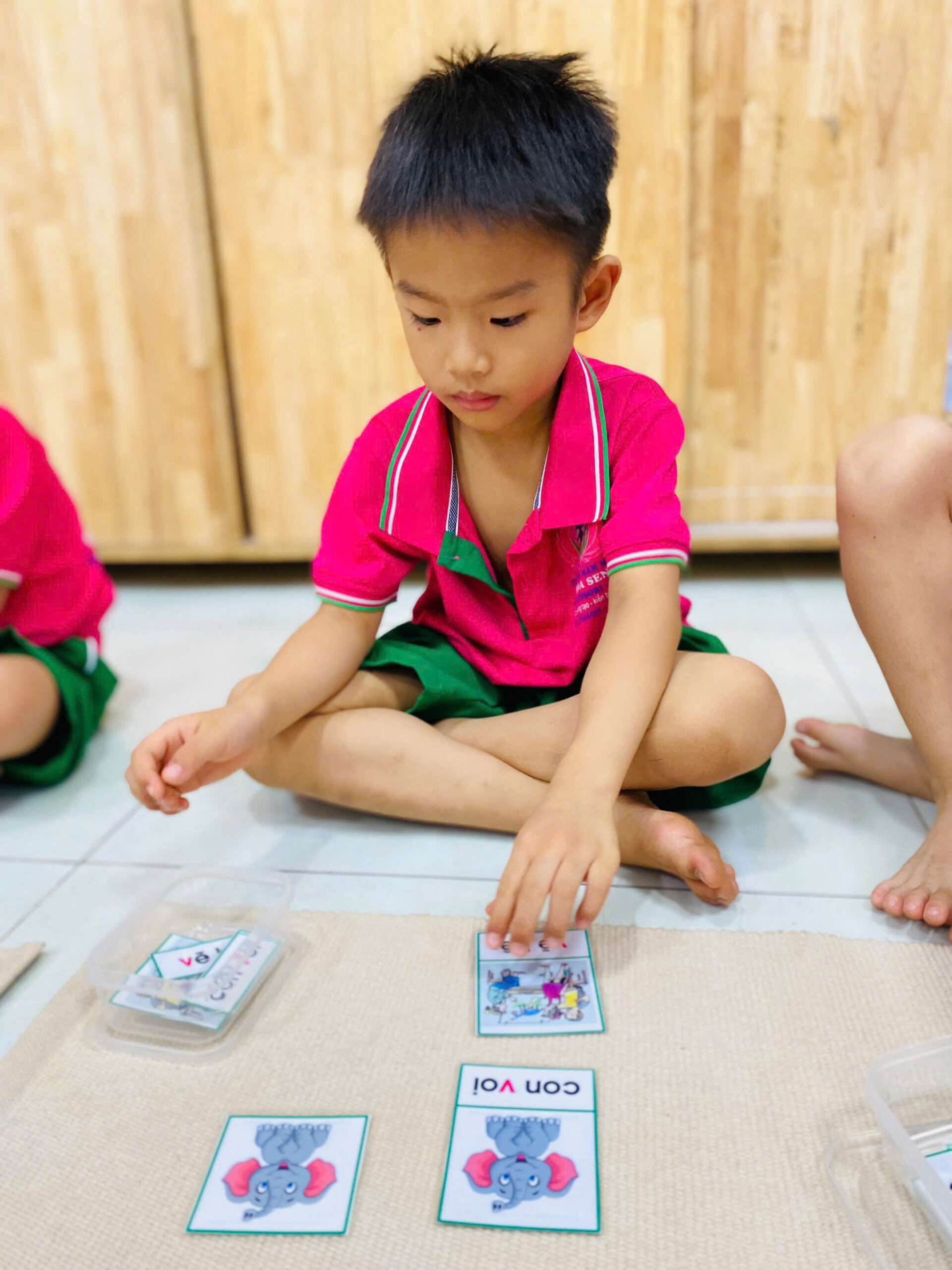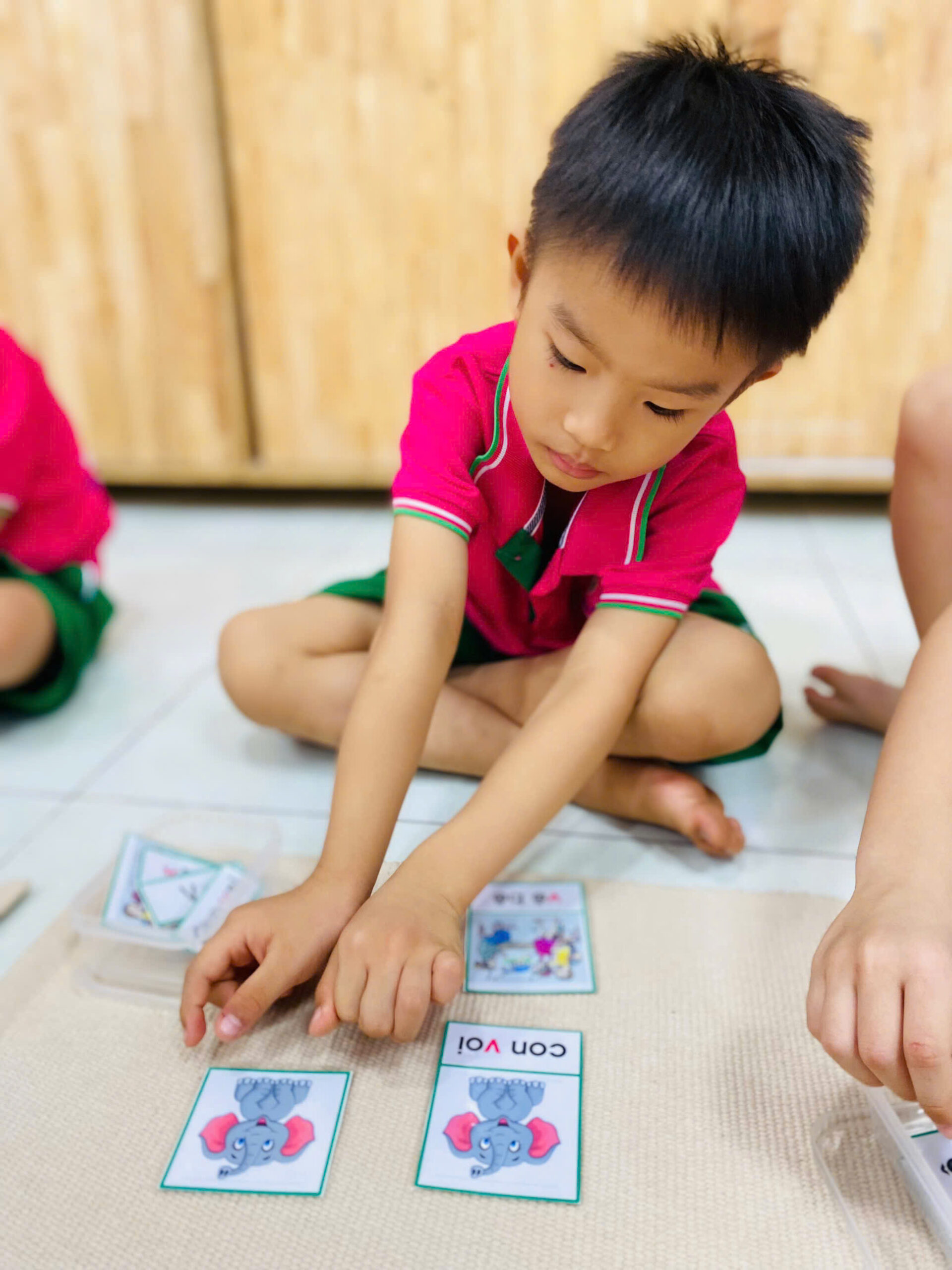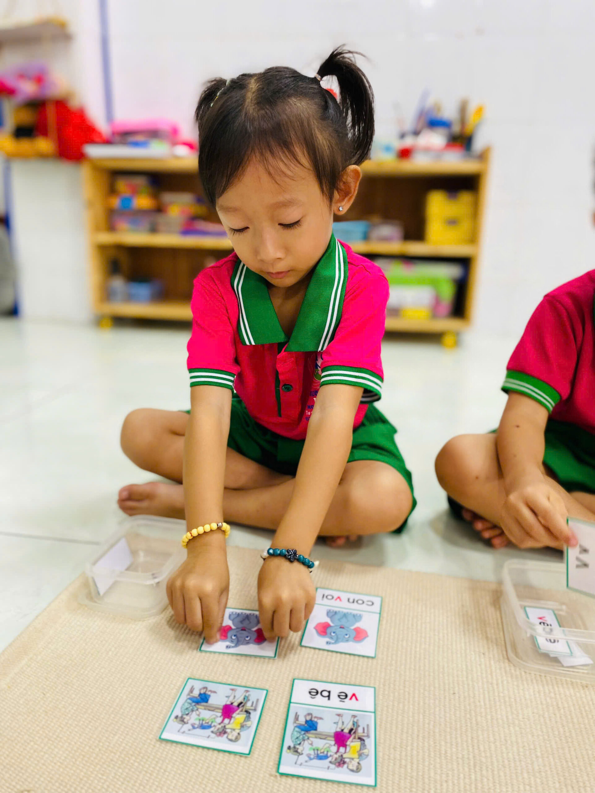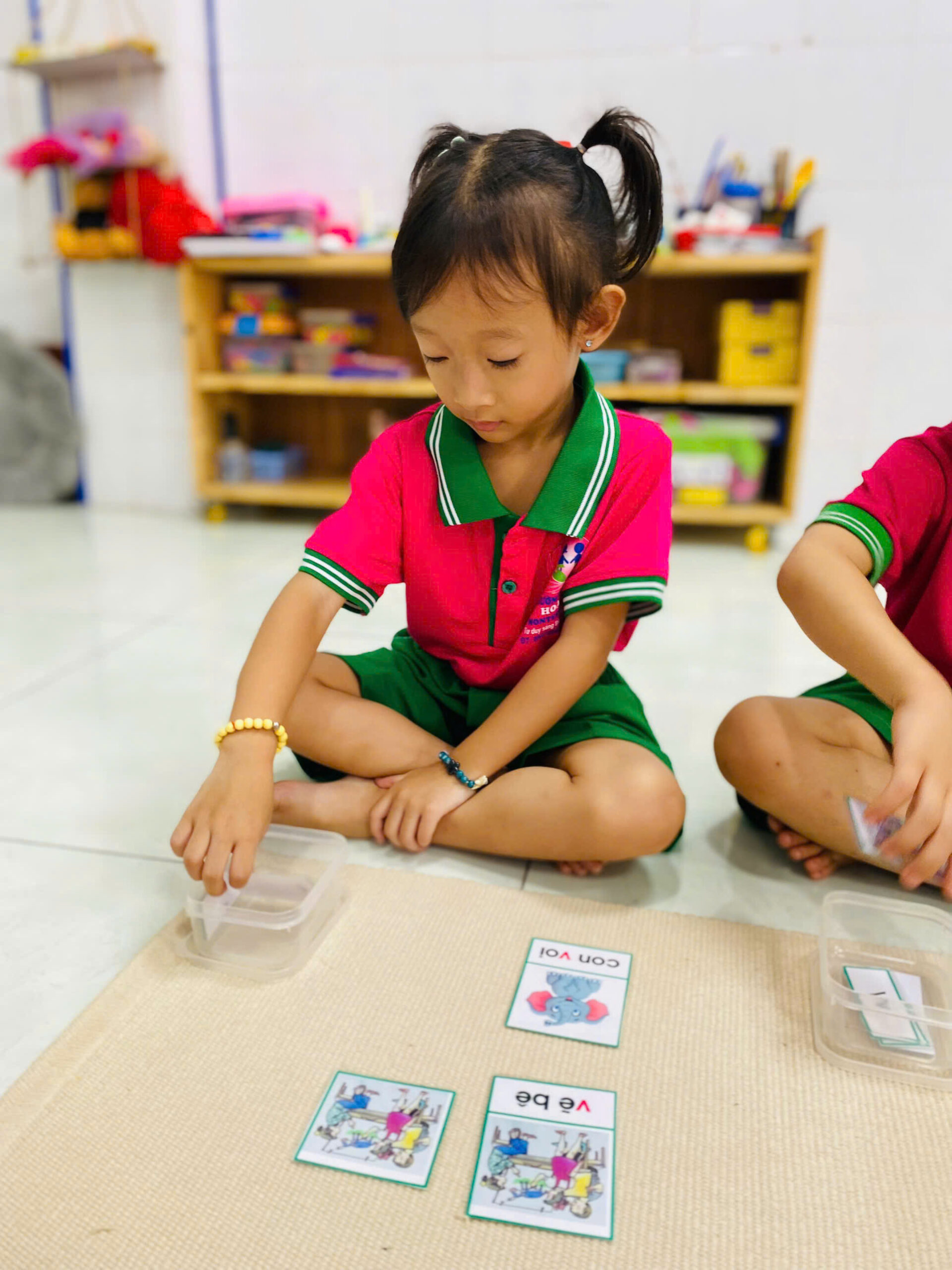 👦👧 Mỗi bé đều rất tập trung 😍, cẩn thận đặt từng tấm thẻ đúng vị trí 👍.