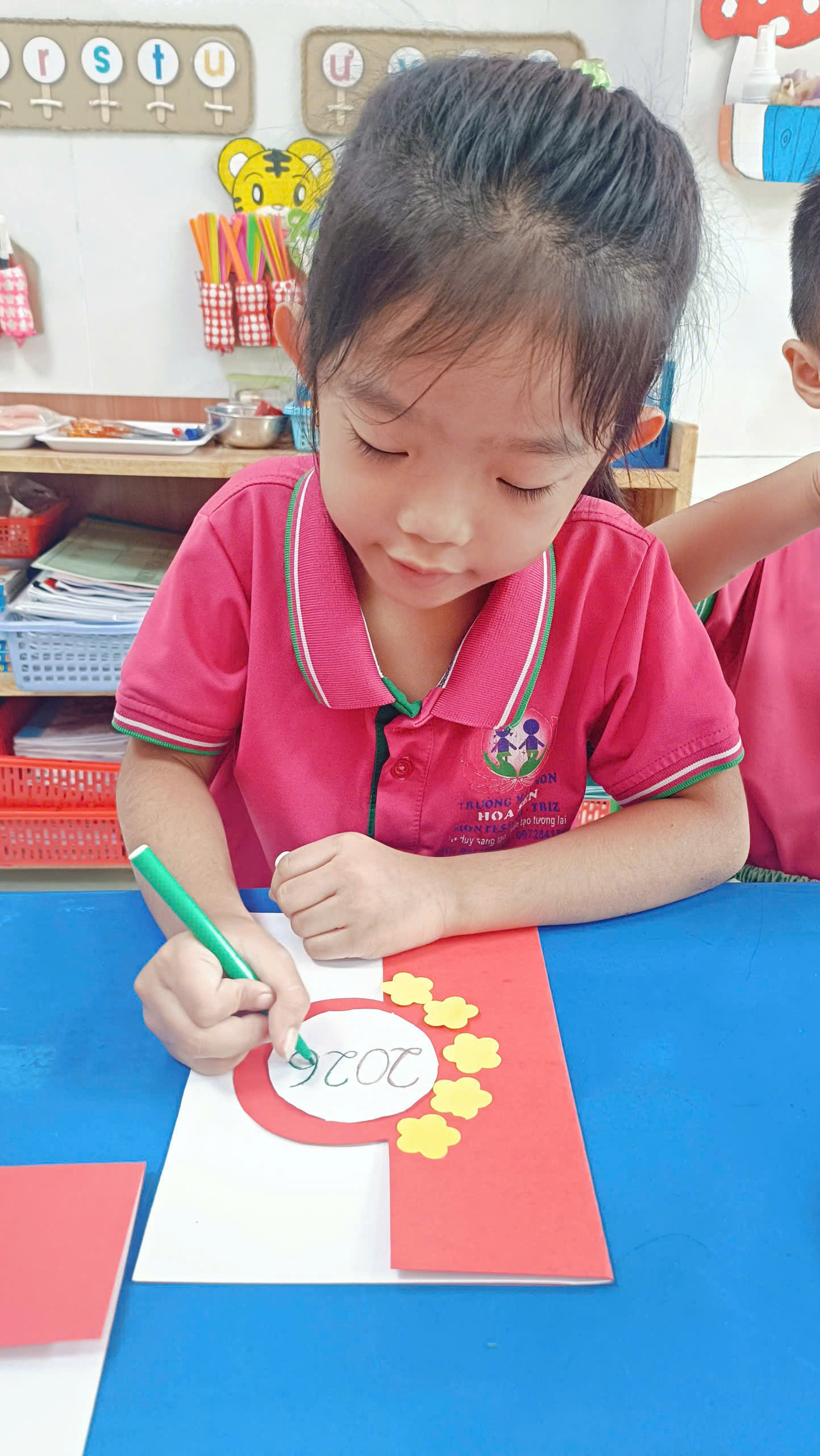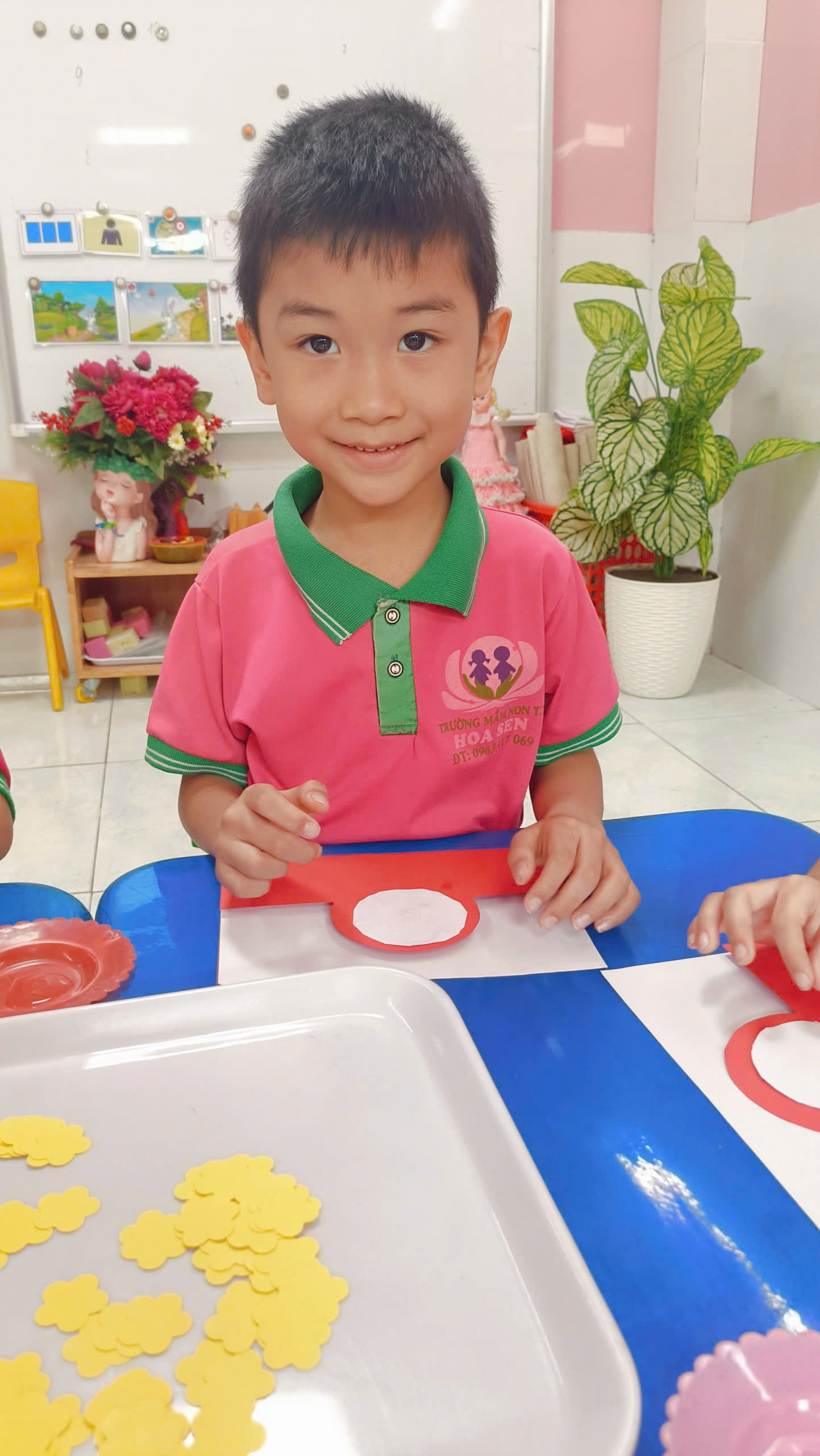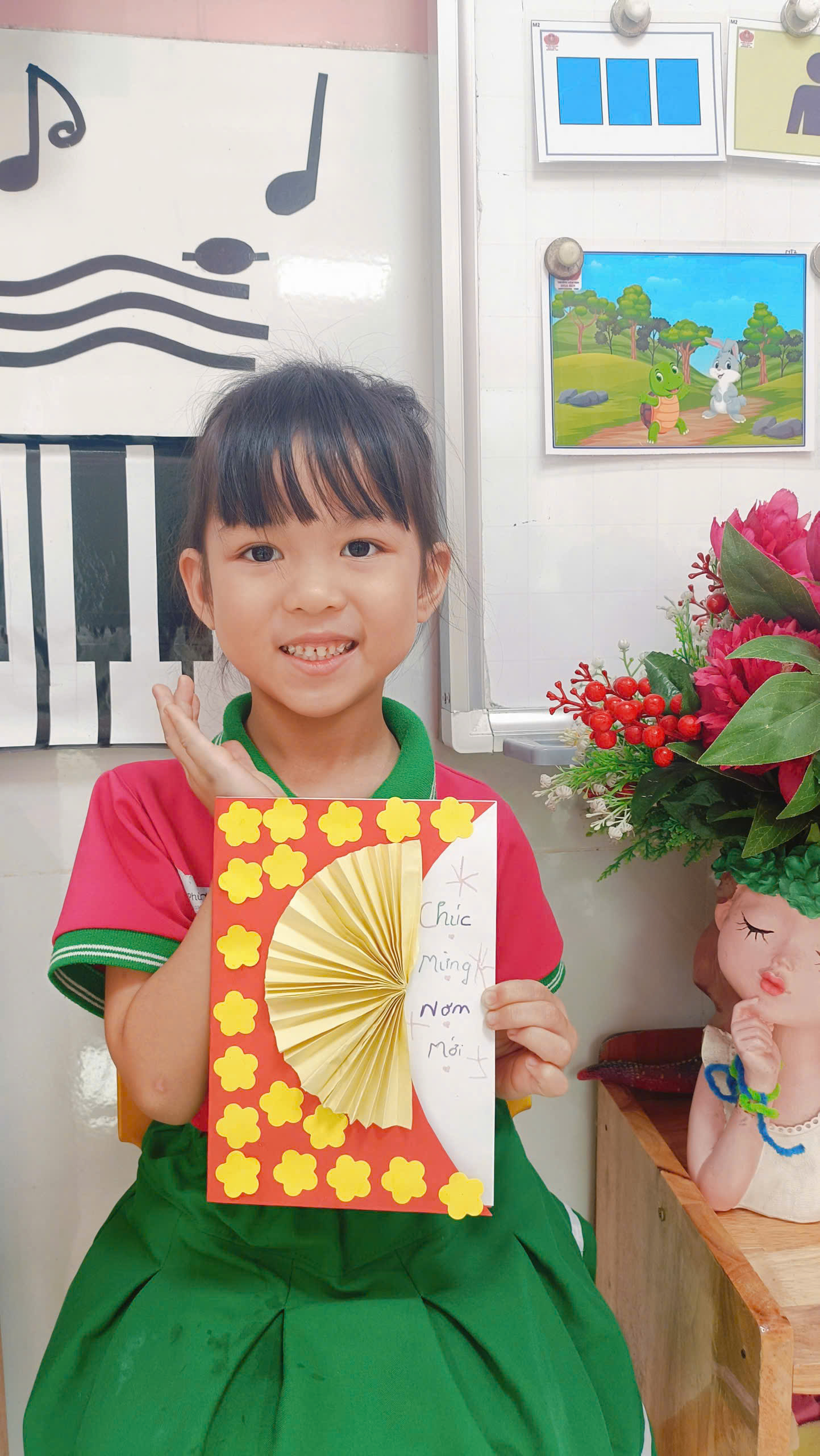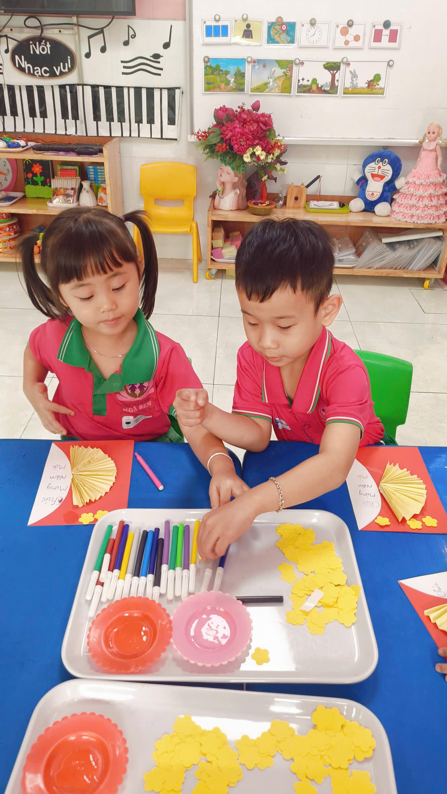 • Bút dạ: Vẽ nên những nét chữ uốn lượn, những nụ cười rạng rỡ trên gương mặt trẻ thơ. Tại lớp TRIZ, một bức tranh không chỉ là hình ảnh, mà là sự vận dụng các nguyên tắc sáng tạo. Làm sao để bông hoa mai trông thật “động”? Làm sao để phối màu sắc sao cho hài hòa nhưng vẫn nổi bật? Mỗi mảnh giấy dán lên là một lời giải cho bài toán thẩm mỹ và tư duy.