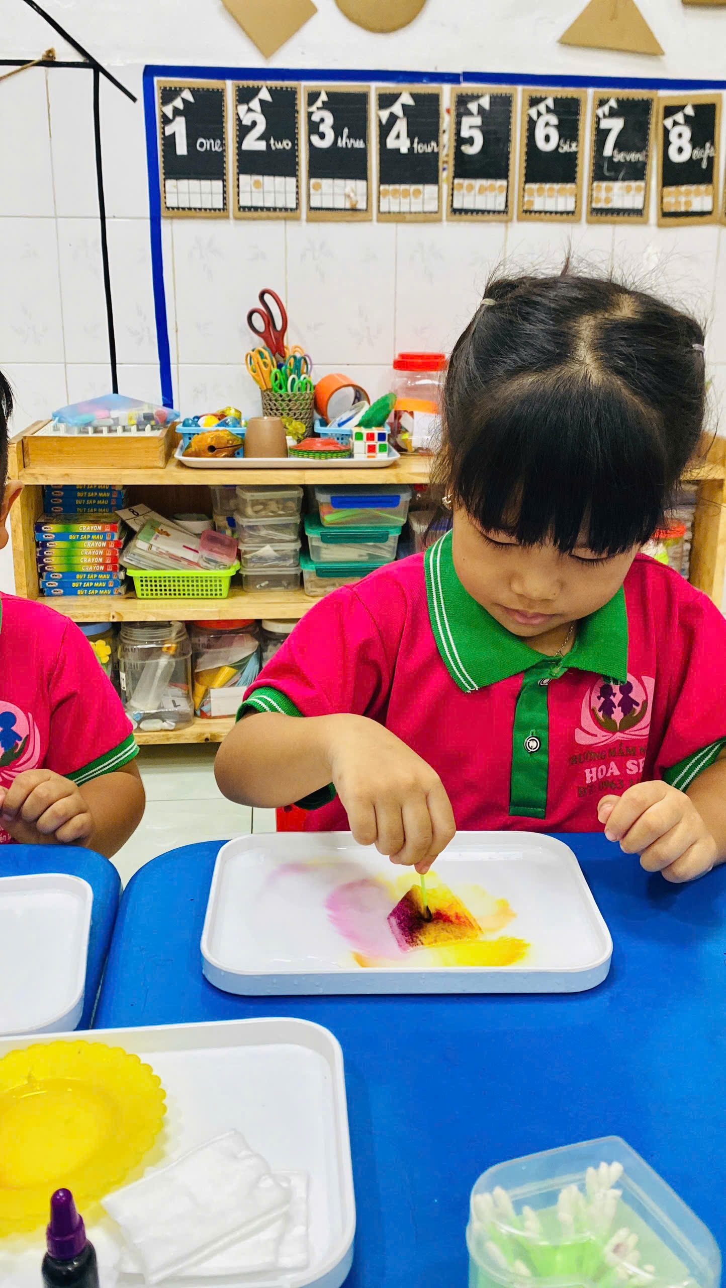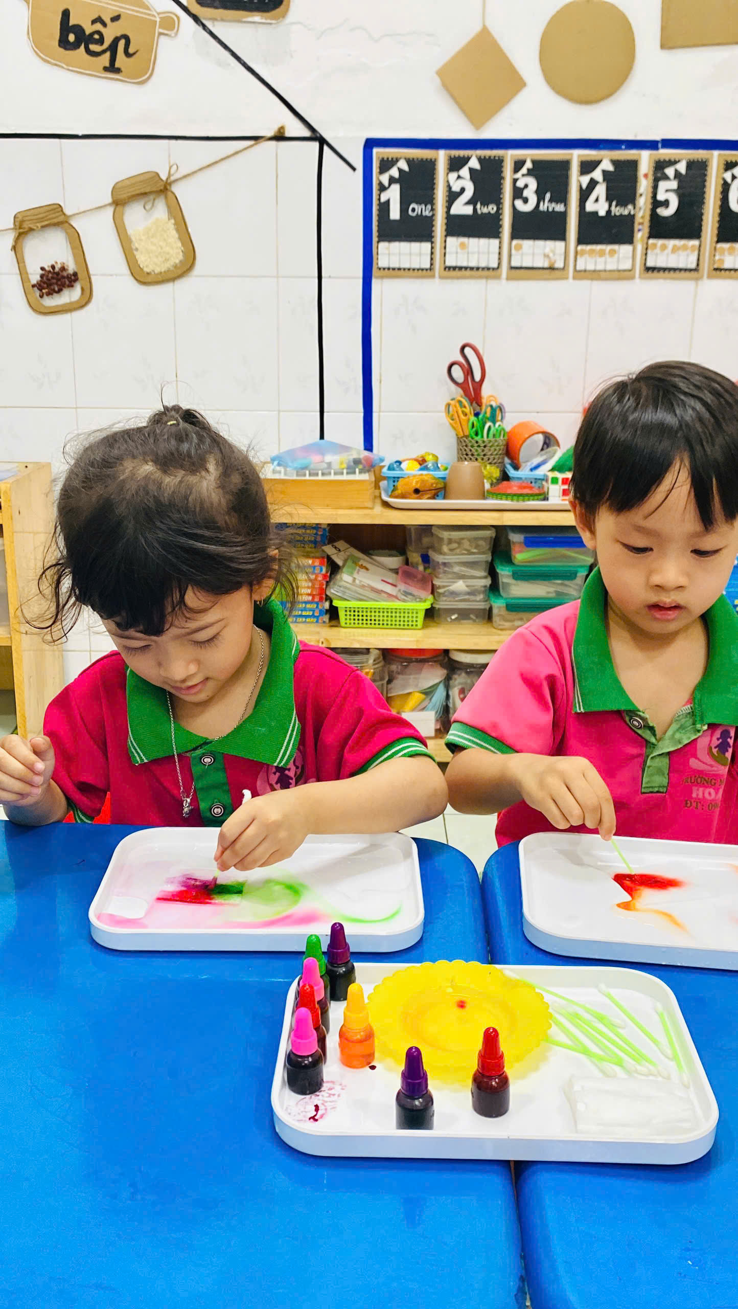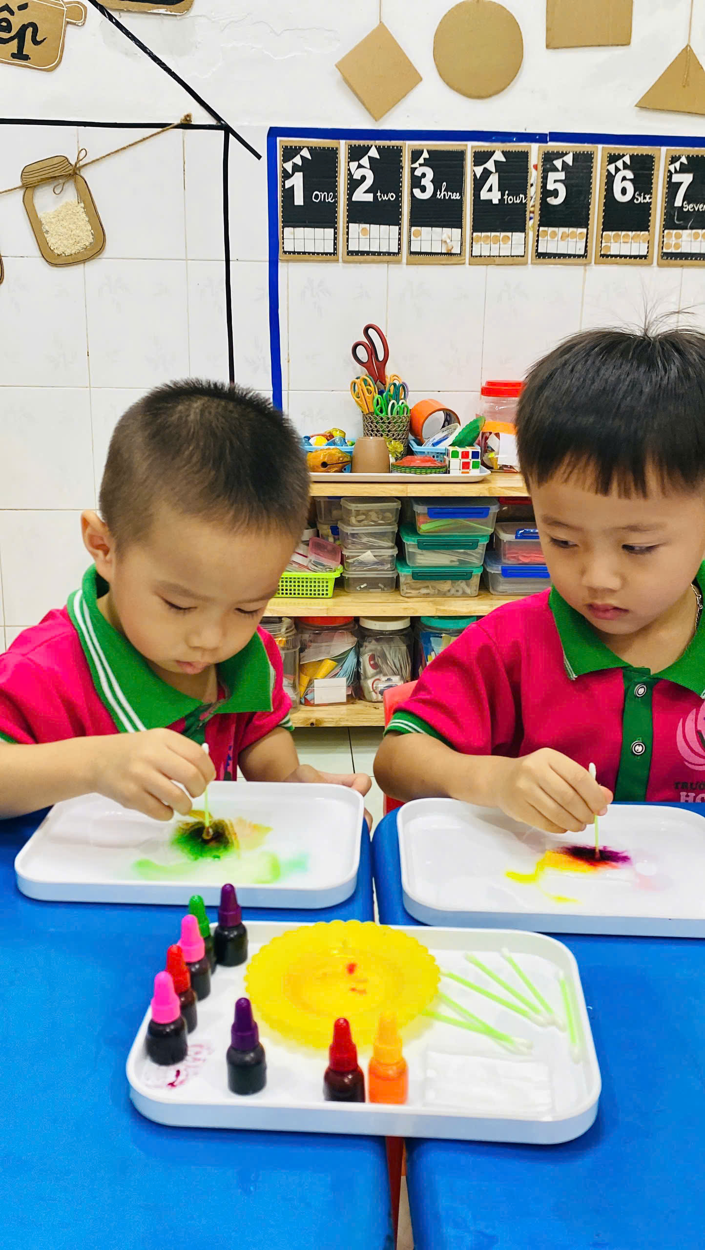 Hôm nay, lớp Chồi 2 đã cùng nhau bước vào một “phòng thí nghiệm thu nhỏ” với hoạt động hấp dẫn mang tên “Pháo hoa trong nước”! 💧💥