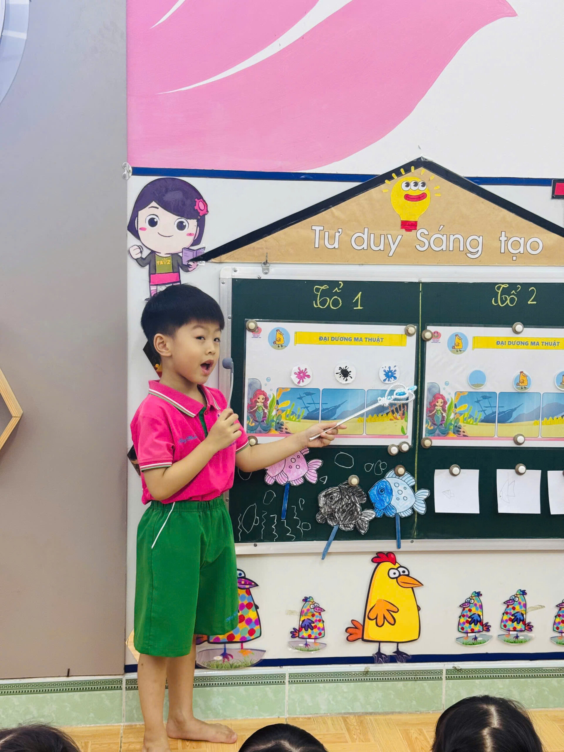 🎤💡 Các bé mạnh dạn đứng lên trình bày suy nghĩ, đặt câu hỏi, trả lời câu hỏi và đưa ra những ý tưởng ngộ nghĩnh nhưng vô cùng sáng tạo. Mỗi ý kiến đều được lắng nghe, mỗi cách nghĩ đều được trân trọng – đúng tinh thần của TRIZ: không có đáp án duy nhất, chỉ có giải pháp phù hợp hơn.