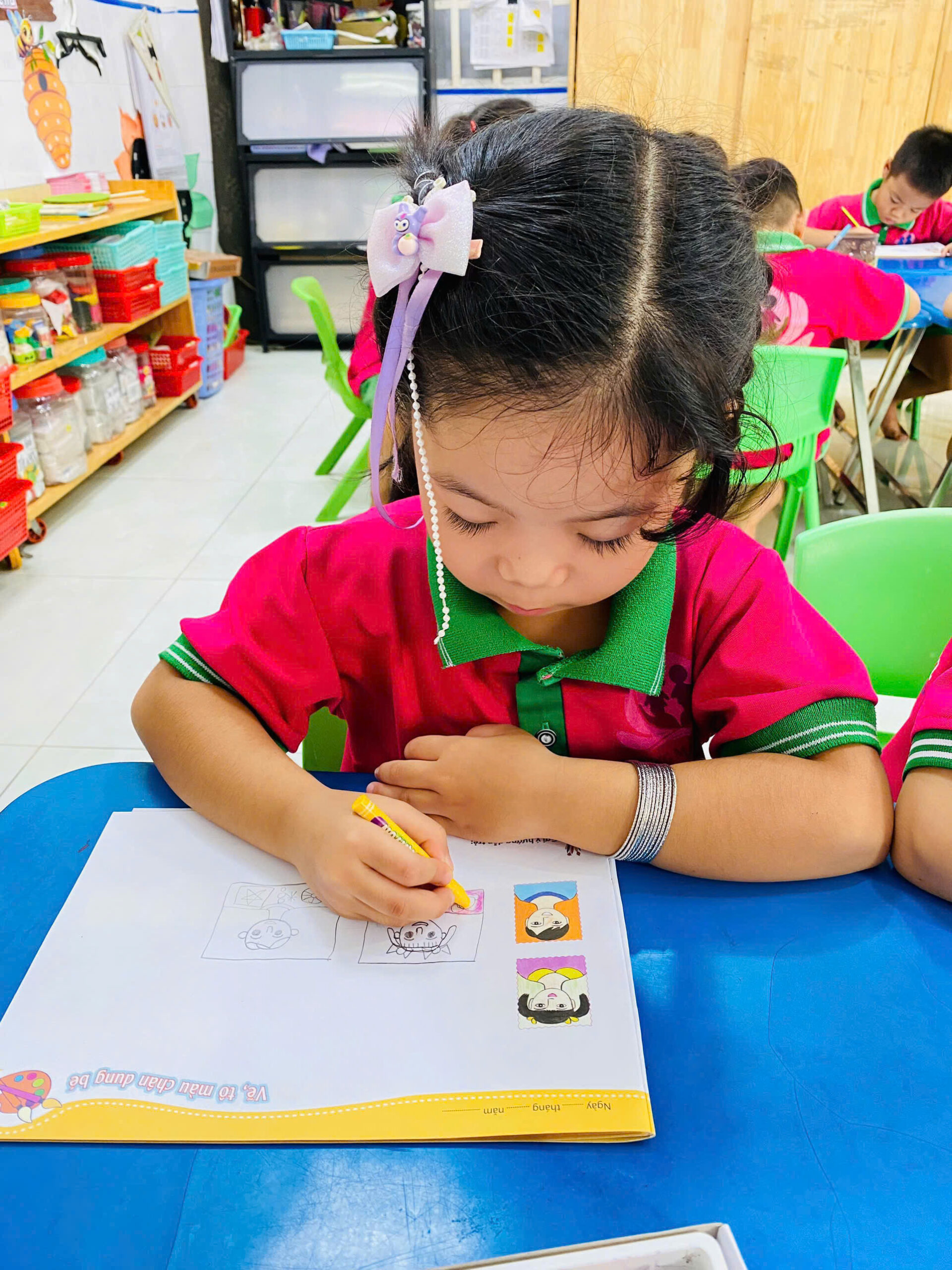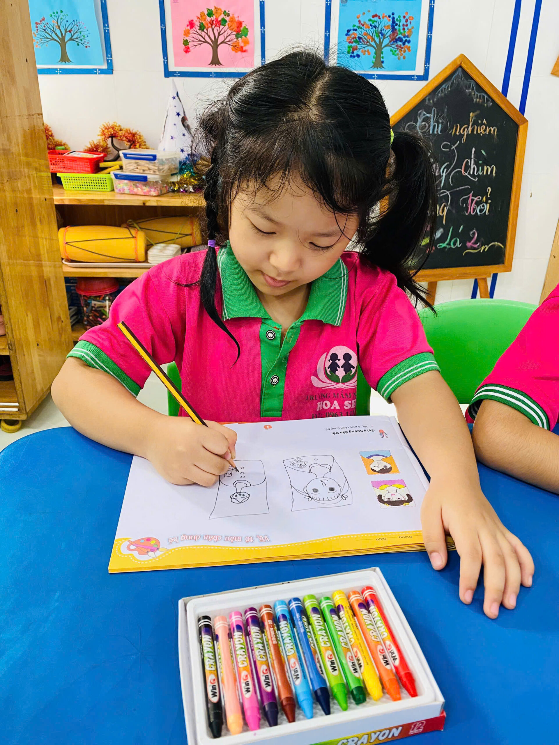 🎈Rèn kỹ năng vận động tinh, phối hợp mắt – tay để phác hình, điều khiển nét vẽ và tô màu đều, chính xác.