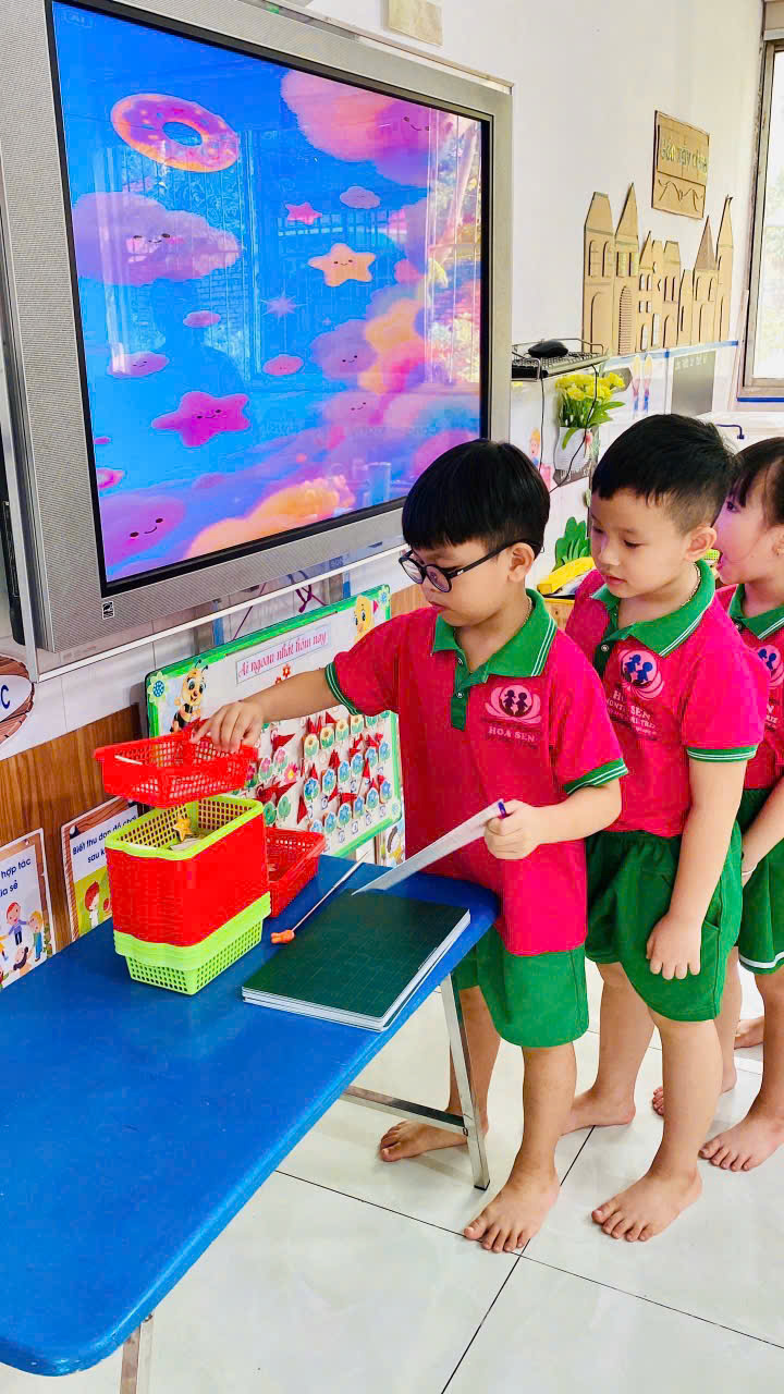 các bé lớp Lá 2 đã có một tiết học vô cùng thú vị với chủ đề “Đếm và tách nhóm đối tượng có số lượng 6”. Đây là hoạt động giúp trẻ hình thành tư duy toán học ban đầu thông qua quan sát, thao tác và trải nghiệm thực tế.