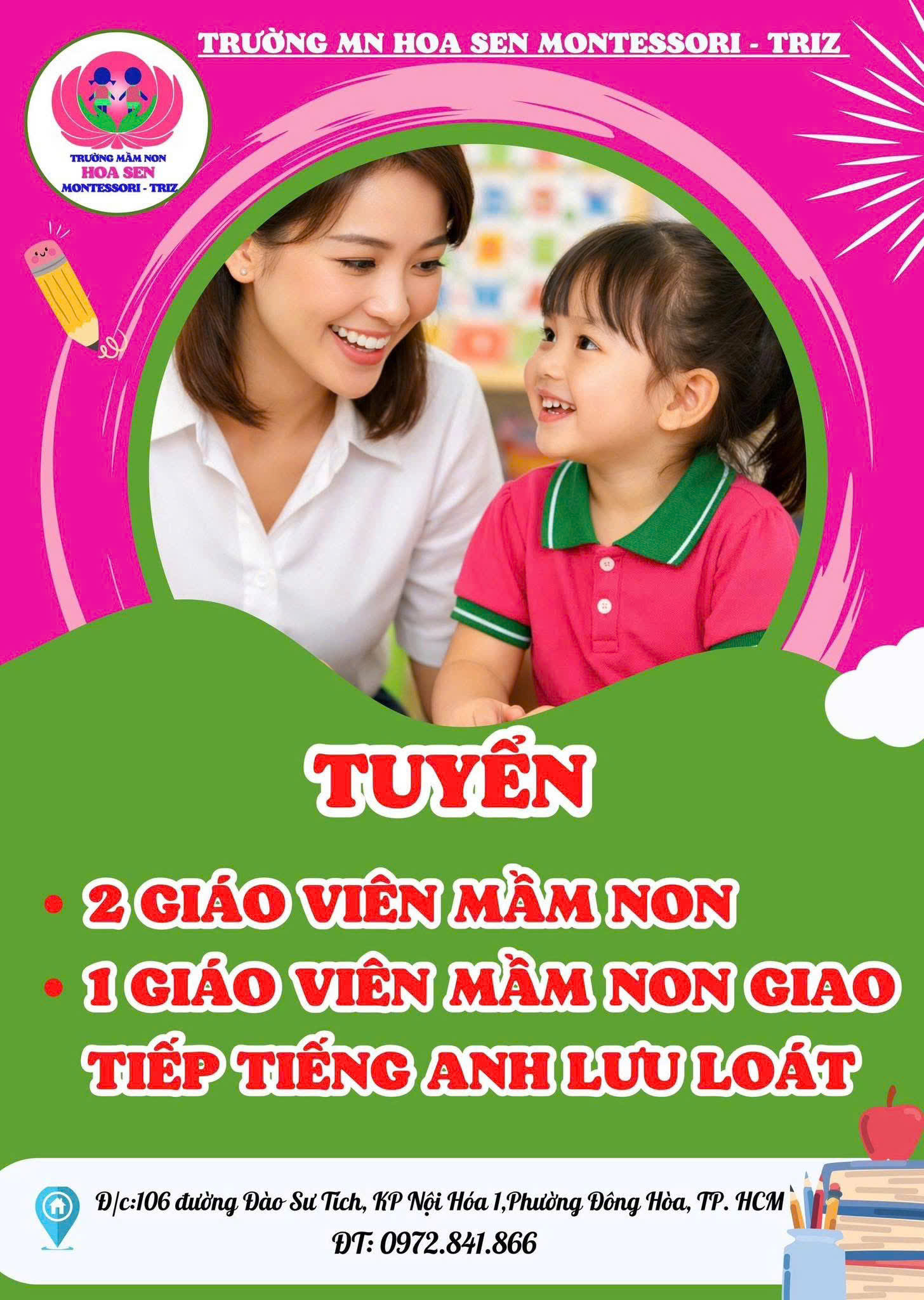 🌸 TRỪƠNG MN HOA SEN MONTESSORI – TRIZ TUYỂN DỤNG ĐỒNG ĐỘI “NGƯỜI MẸ THỨ 2’’