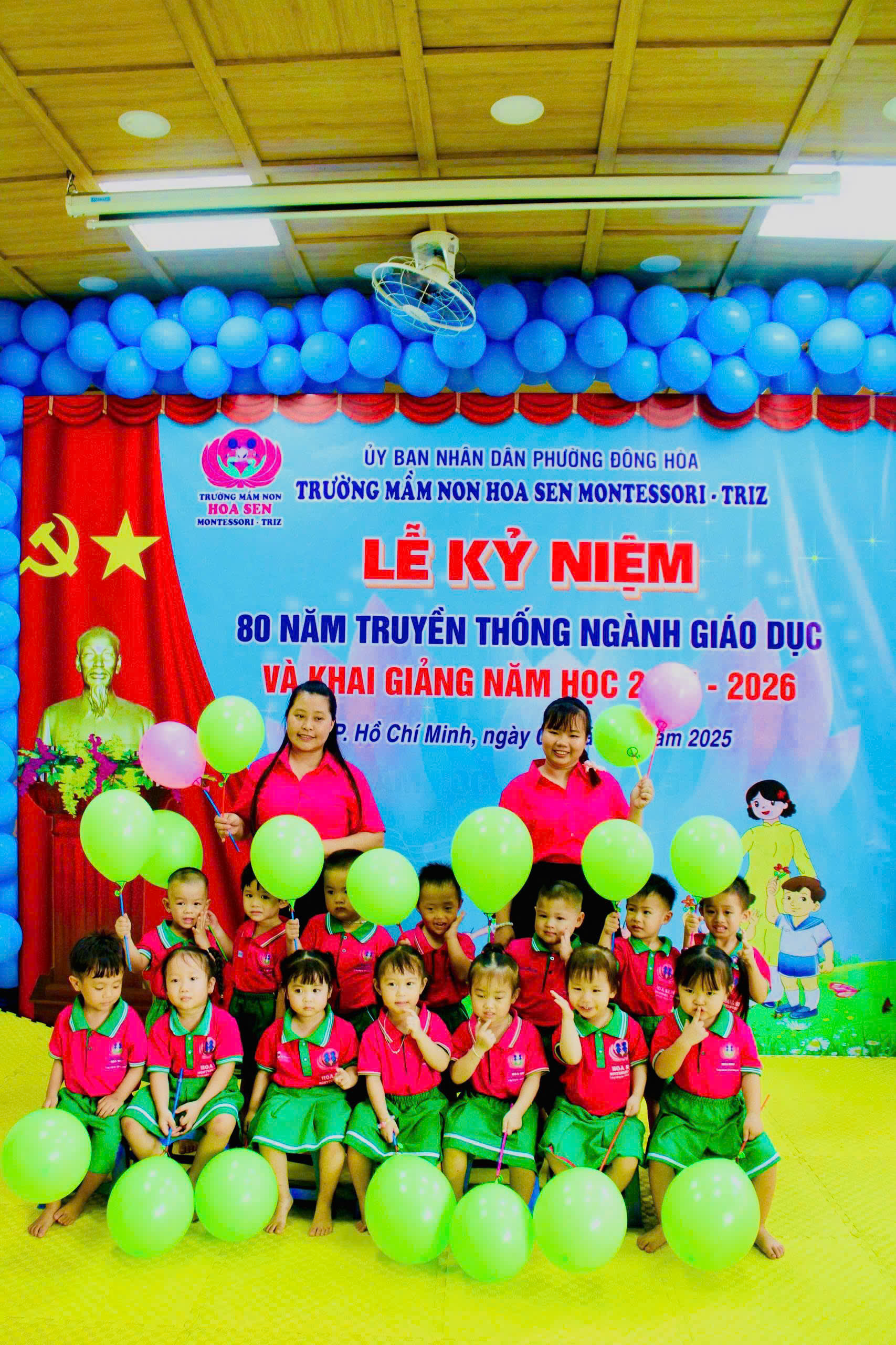 trong không khí hân hoan, ấm áp và đầy cảm xúc, tập thể giáo viên – phụ huynh – học sinh Trường Mầm non Hoa Sen Montessori – Triz đã long trọng tổ chức Lễ Kỷ niệm 80 năm ngày truyền thống ngành Giáo dục Việt Nam (1945 – 2025) kết hợp với Lễ Khai giảng năm học mới 2025 – 2026