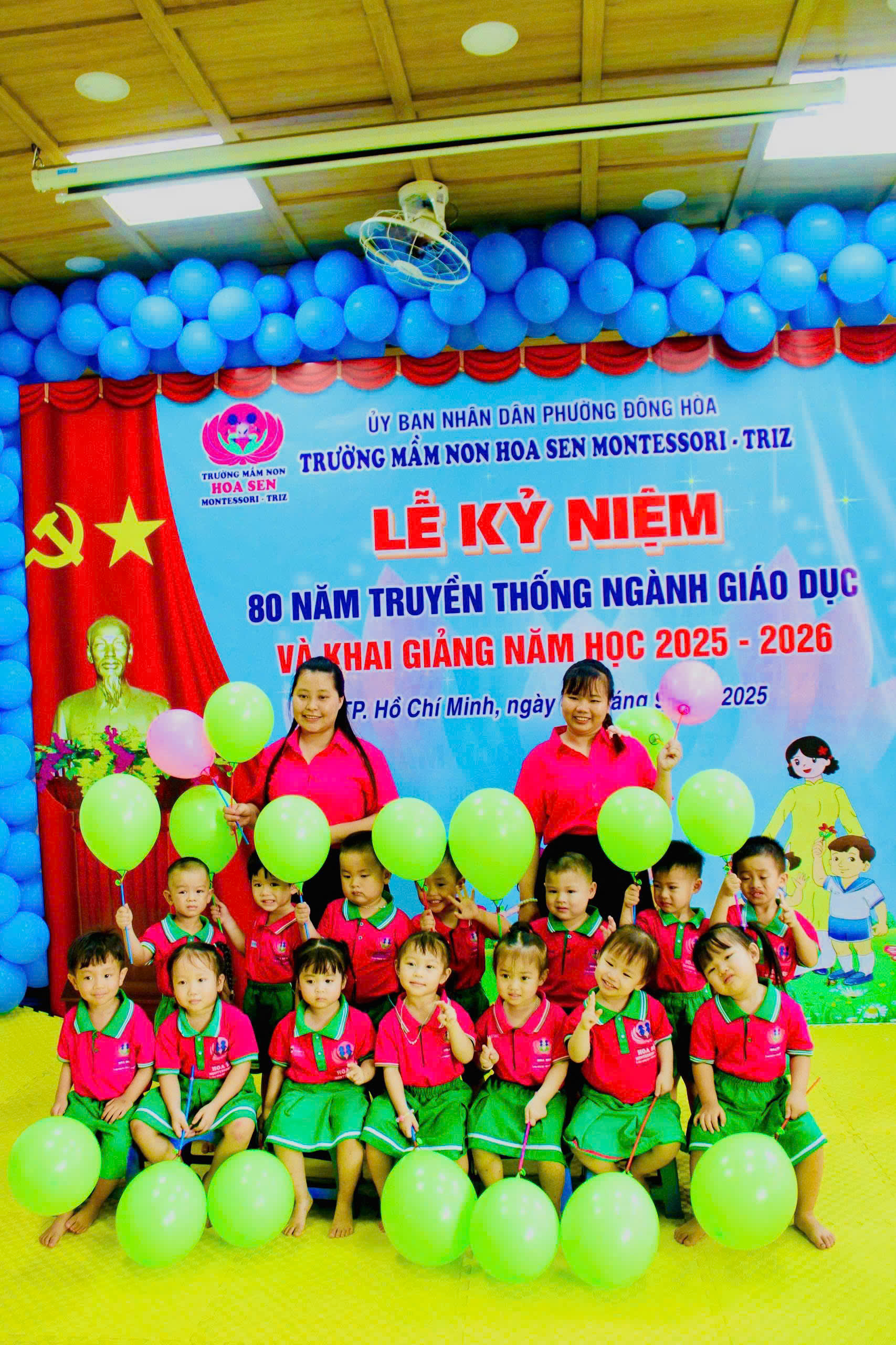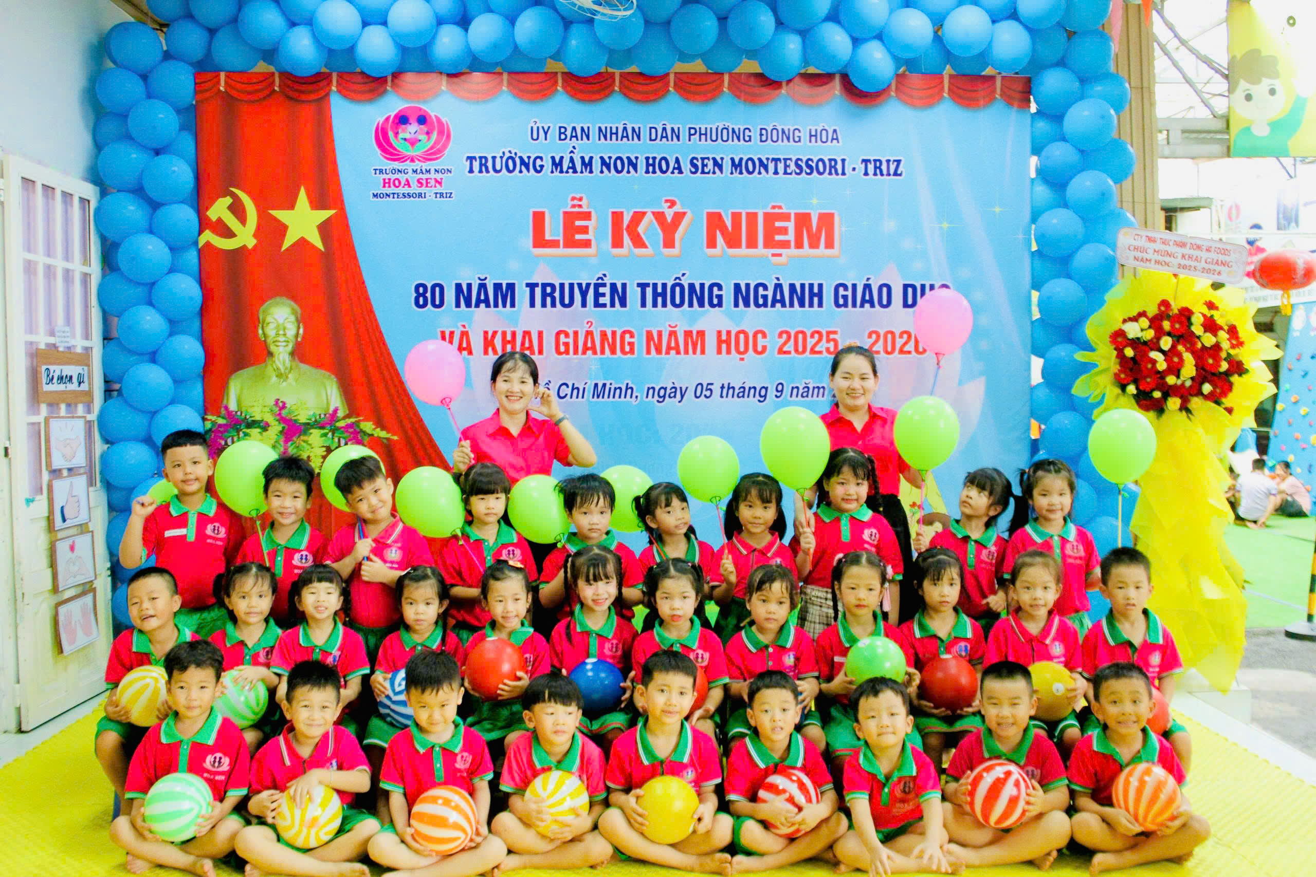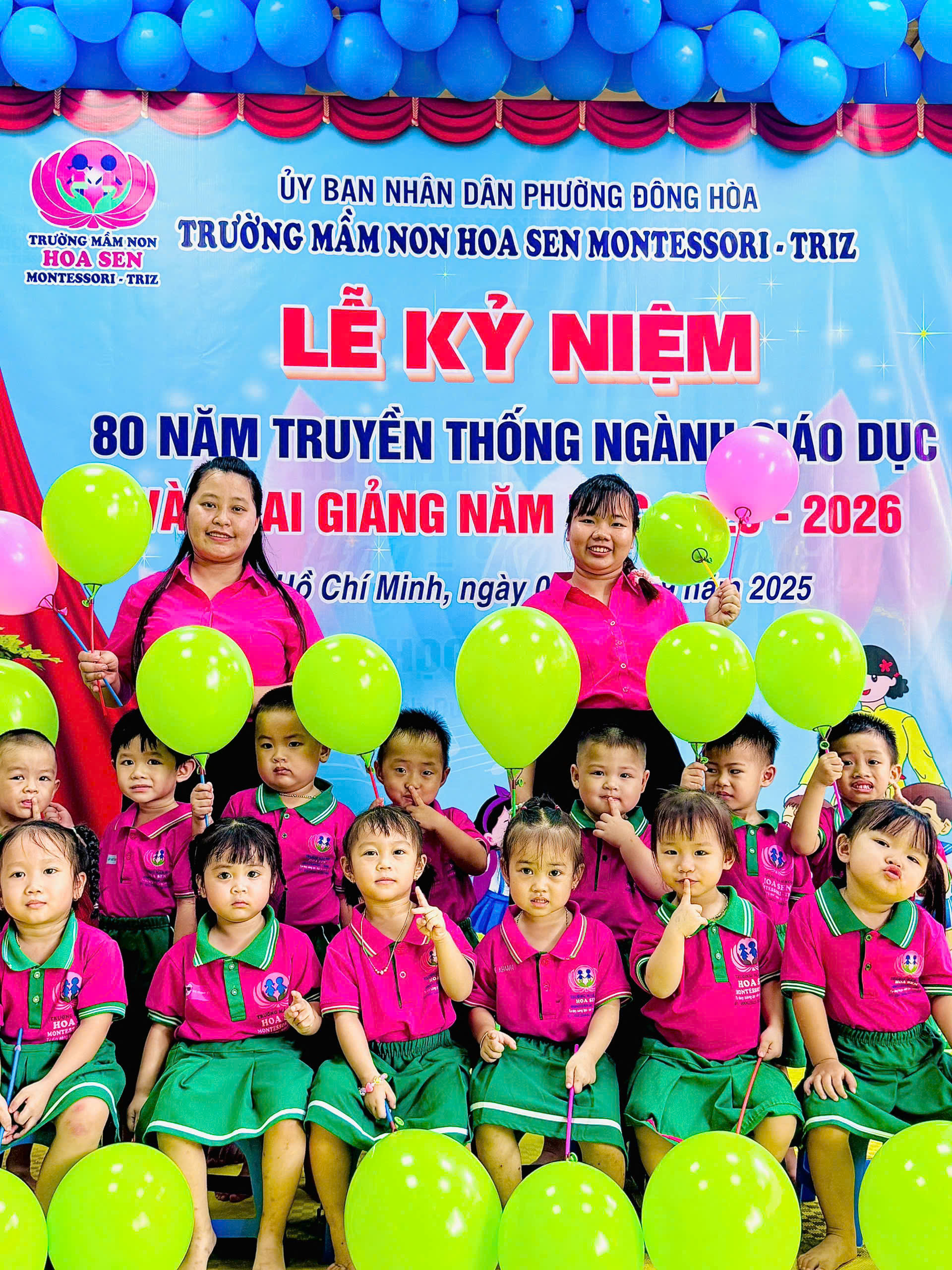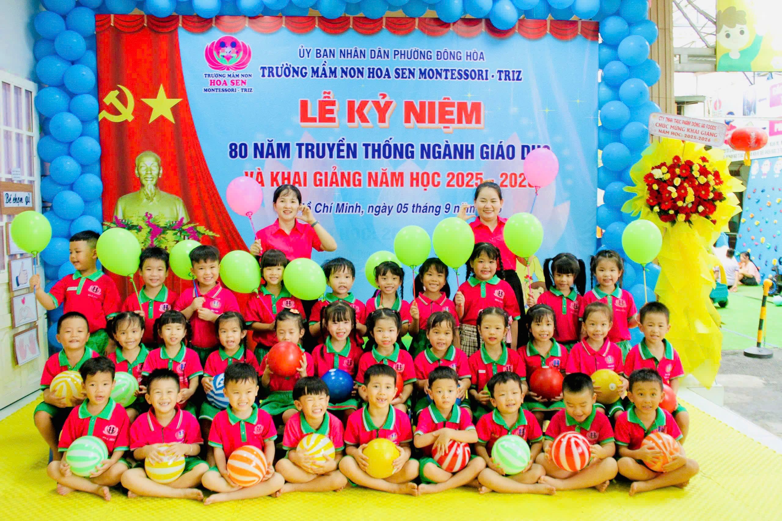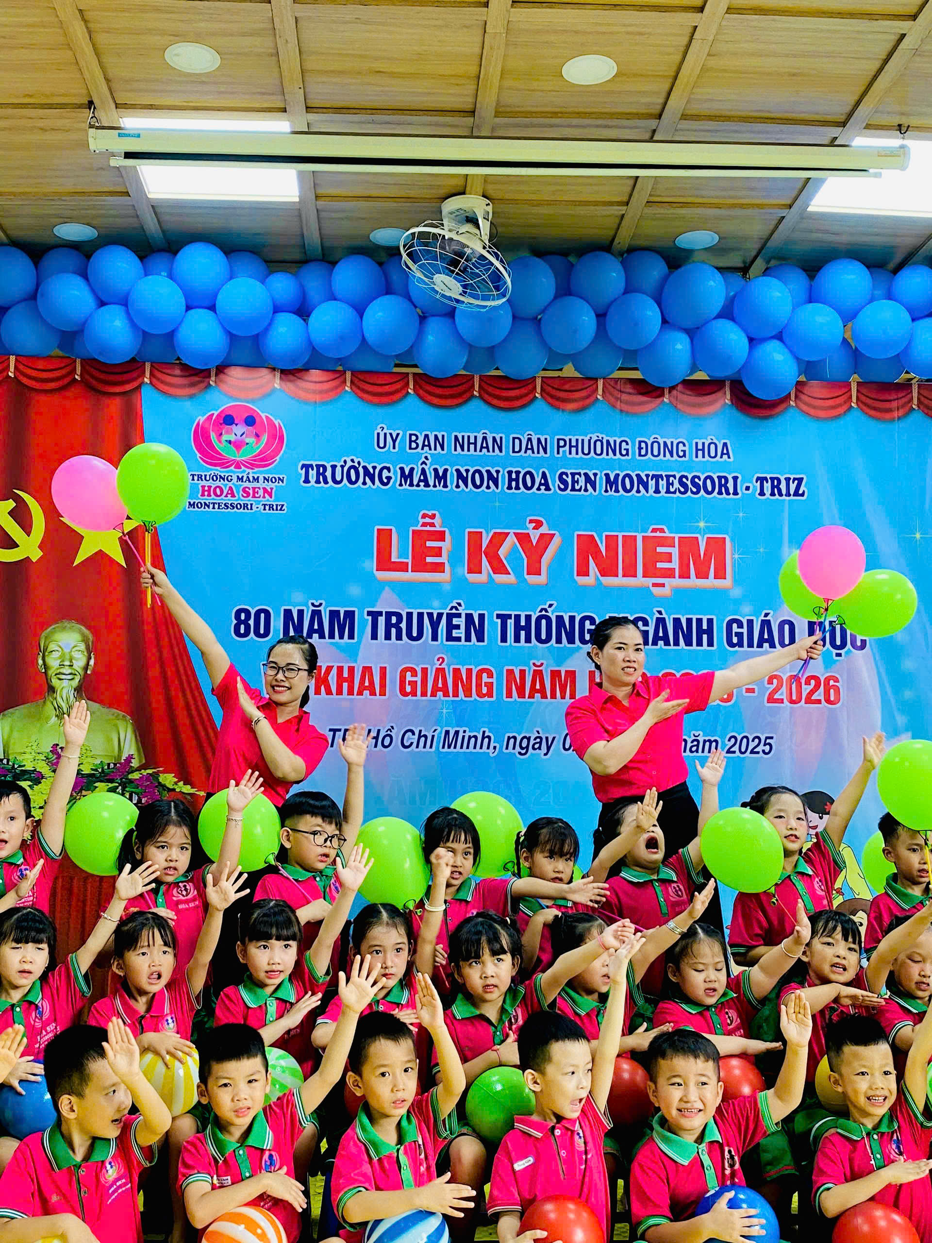 trong không khí hân hoan, ấm áp và đầy cảm xúc, tập thể giáo viên – phụ huynh – học sinh Trường Mầm non Hoa Sen Montessori – Triz đã long trọng tổ chức Lễ Kỷ niệm 80 năm ngày truyền thống ngành Giáo dục Việt Nam (1945 – 2025) kết hợp với Lễ Khai giảng năm học mới 2025 – 2026
