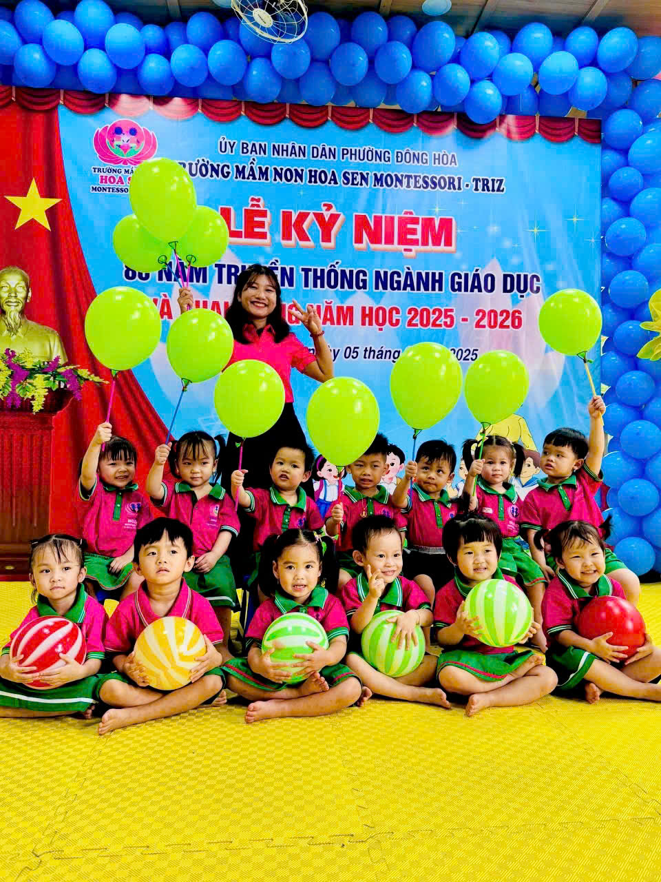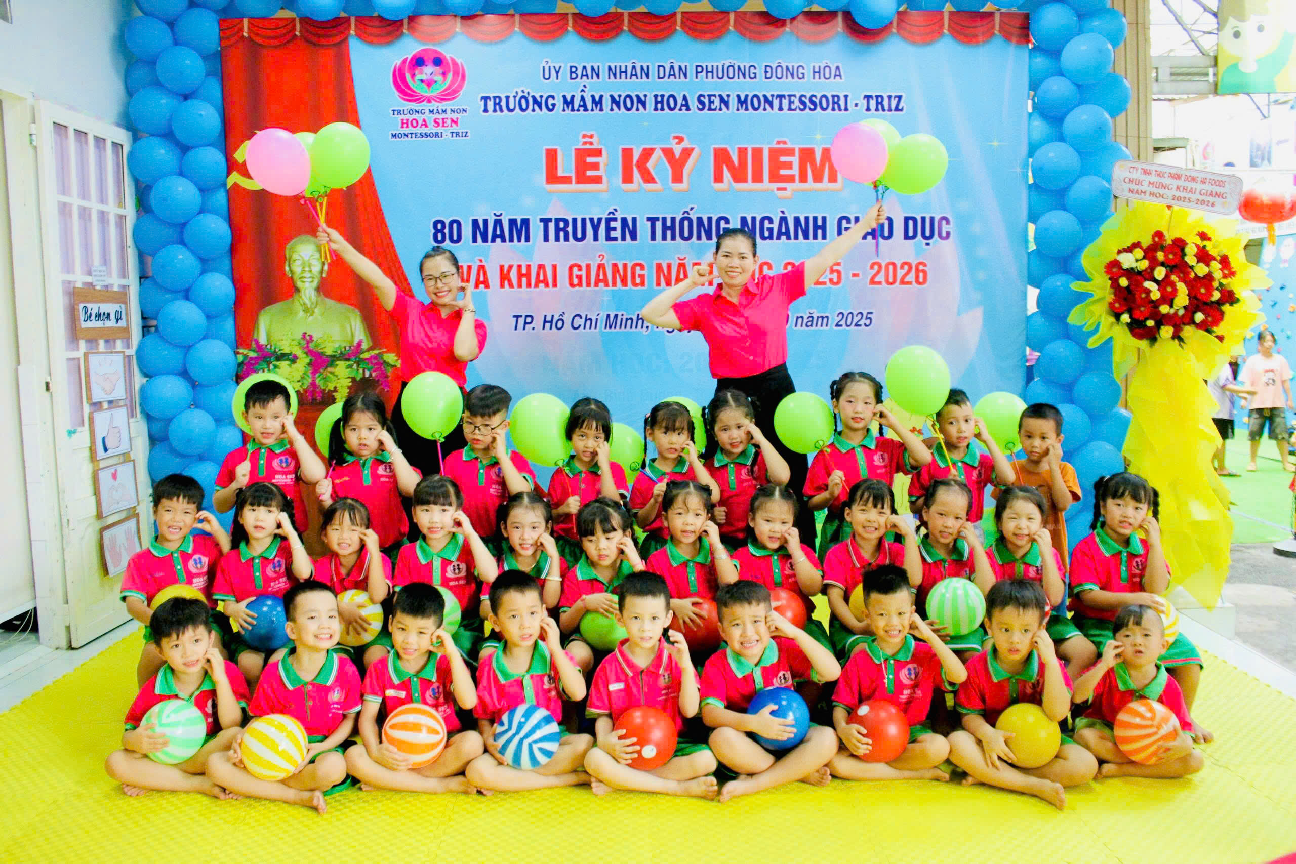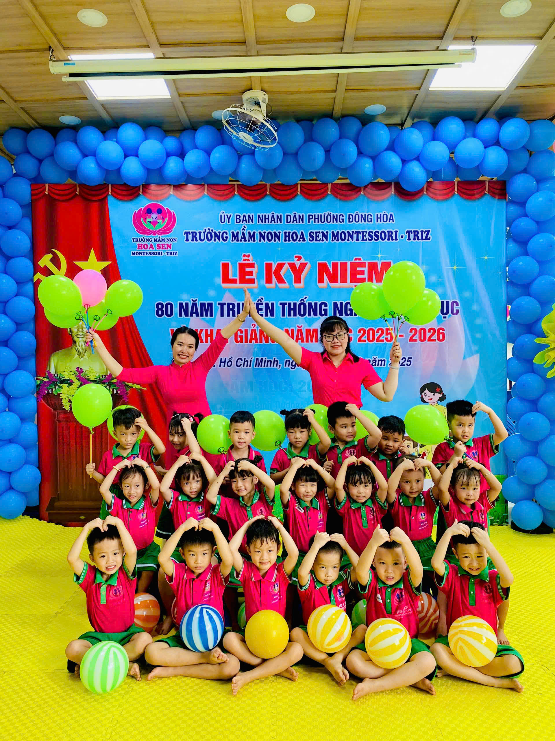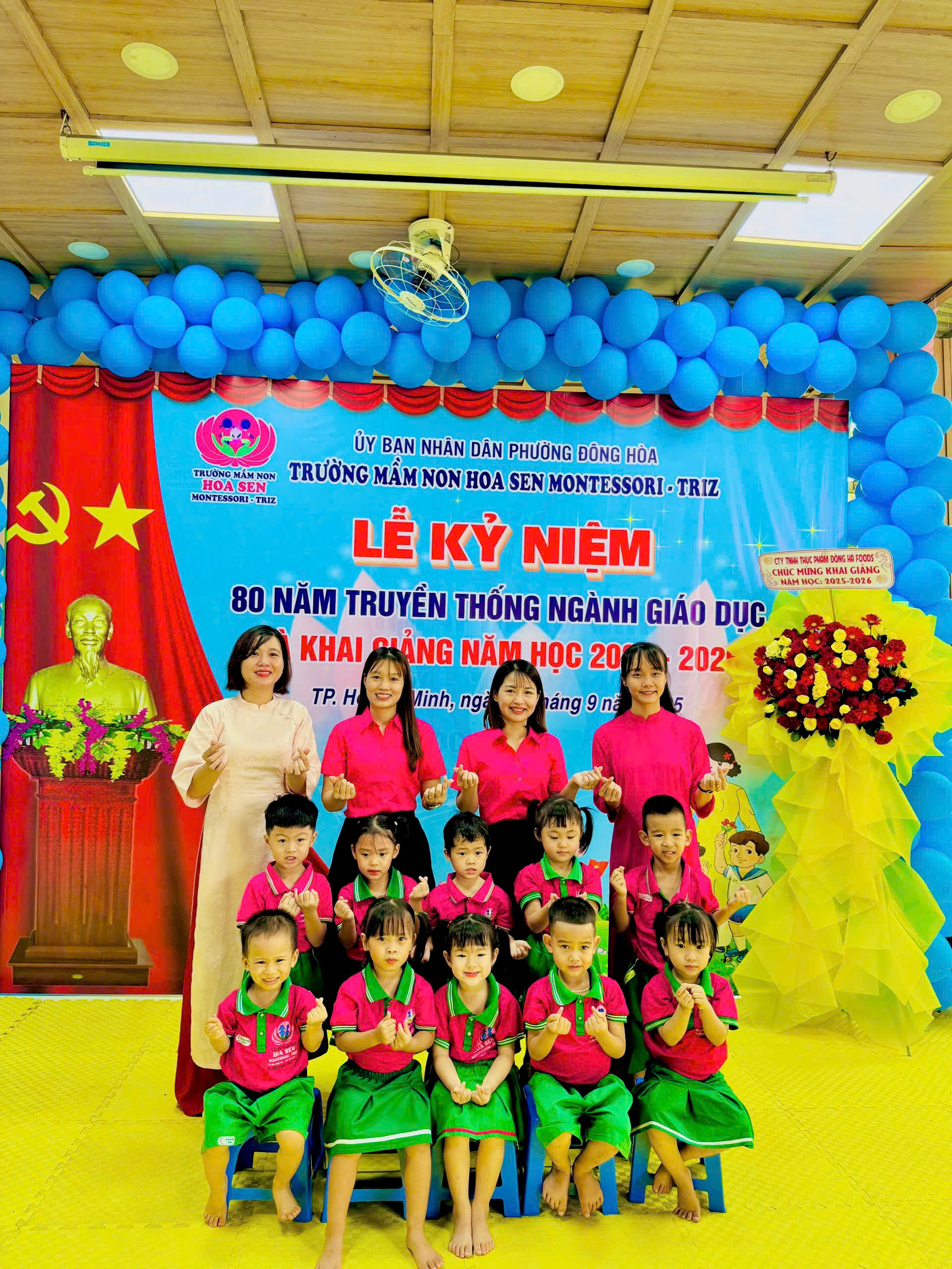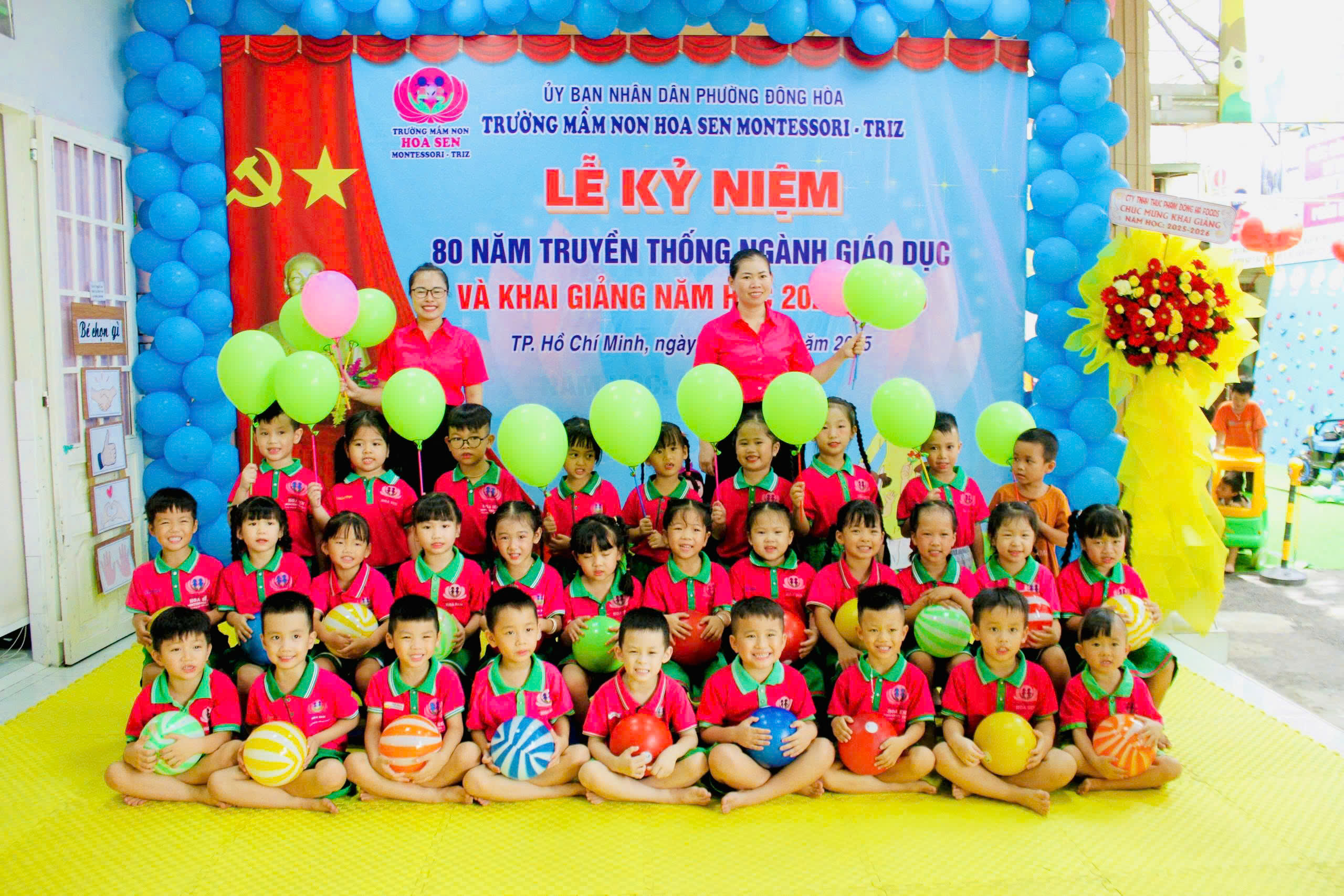 trong không khí hân hoan, ấm áp và đầy cảm xúc, tập thể giáo viên – phụ huynh – học sinh Trường Mầm non Hoa Sen Montessori – Triz đã long trọng tổ chức Lễ Kỷ niệm 80 năm ngày truyền thống ngành Giáo dục Việt Nam (1945 – 2025) kết hợp với Lễ Khai giảng năm học mới 2025 – 2026