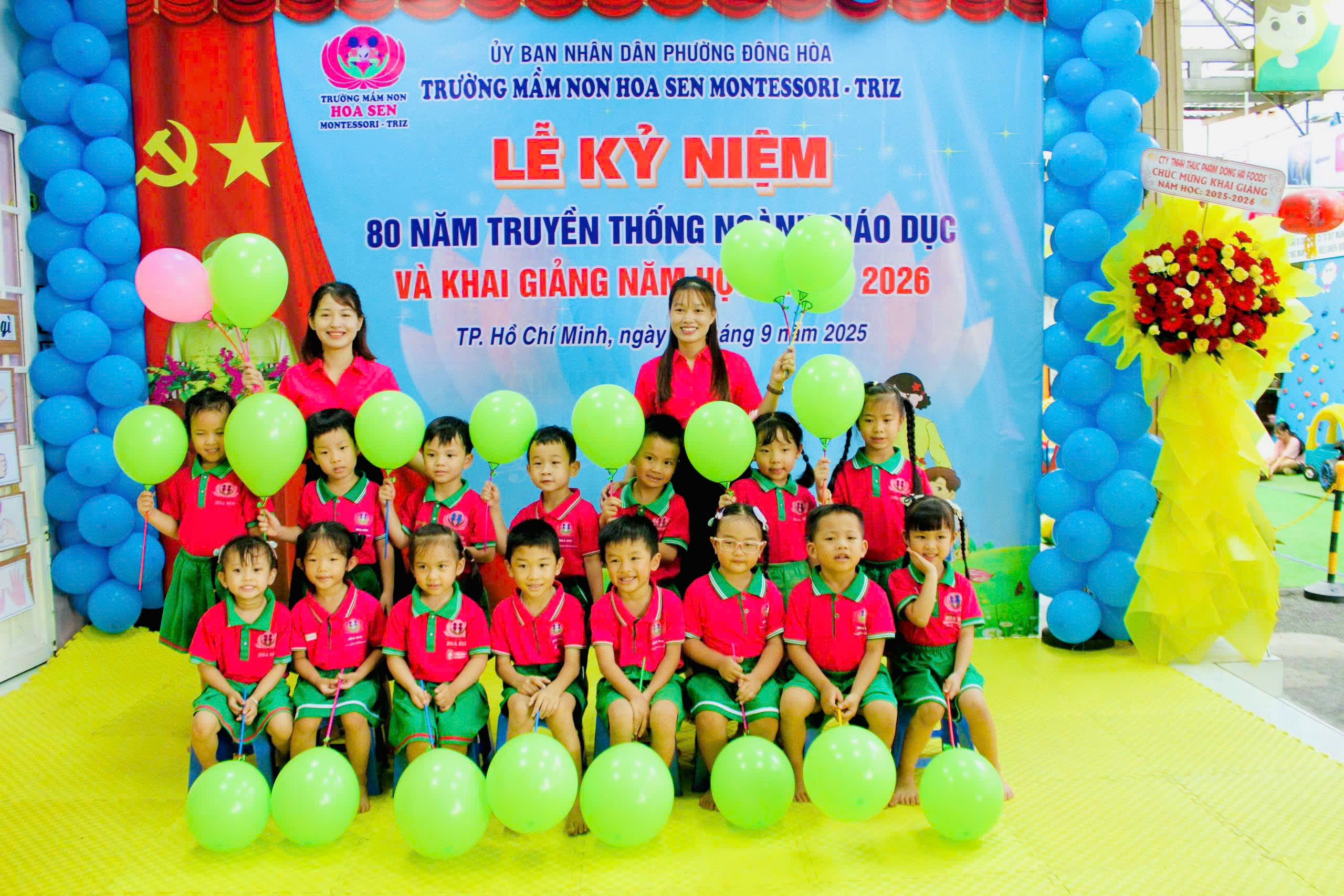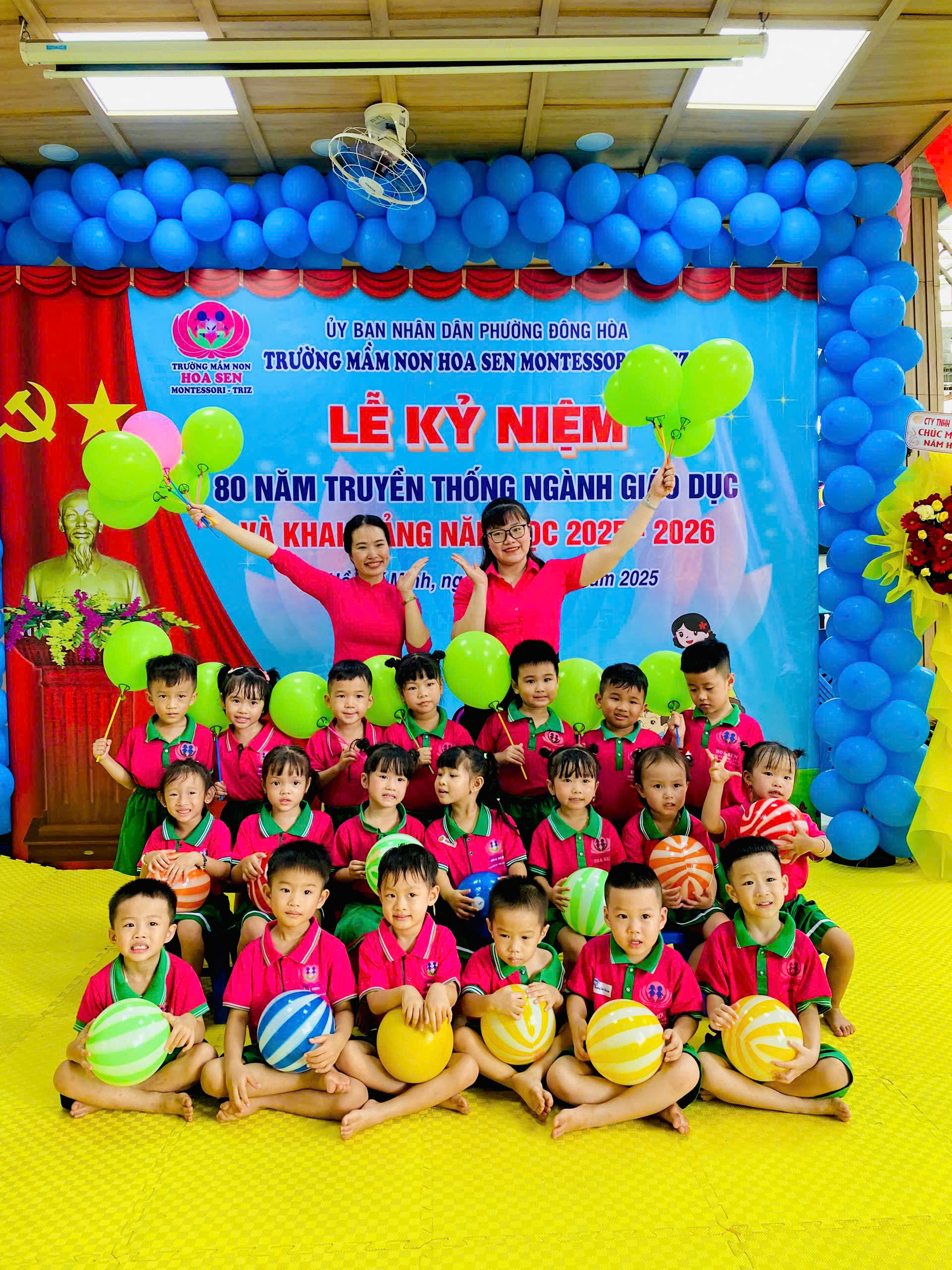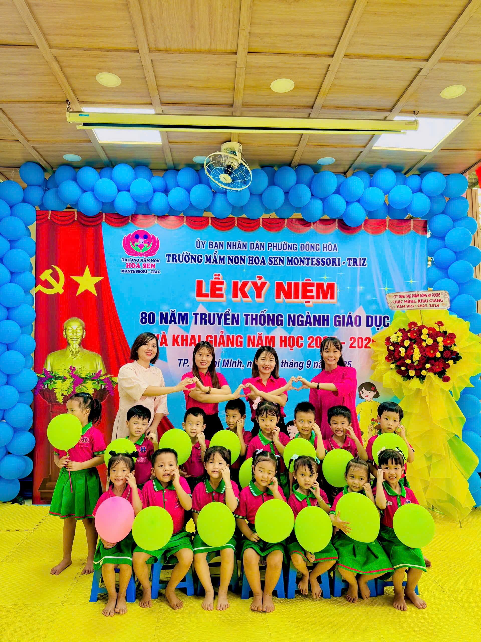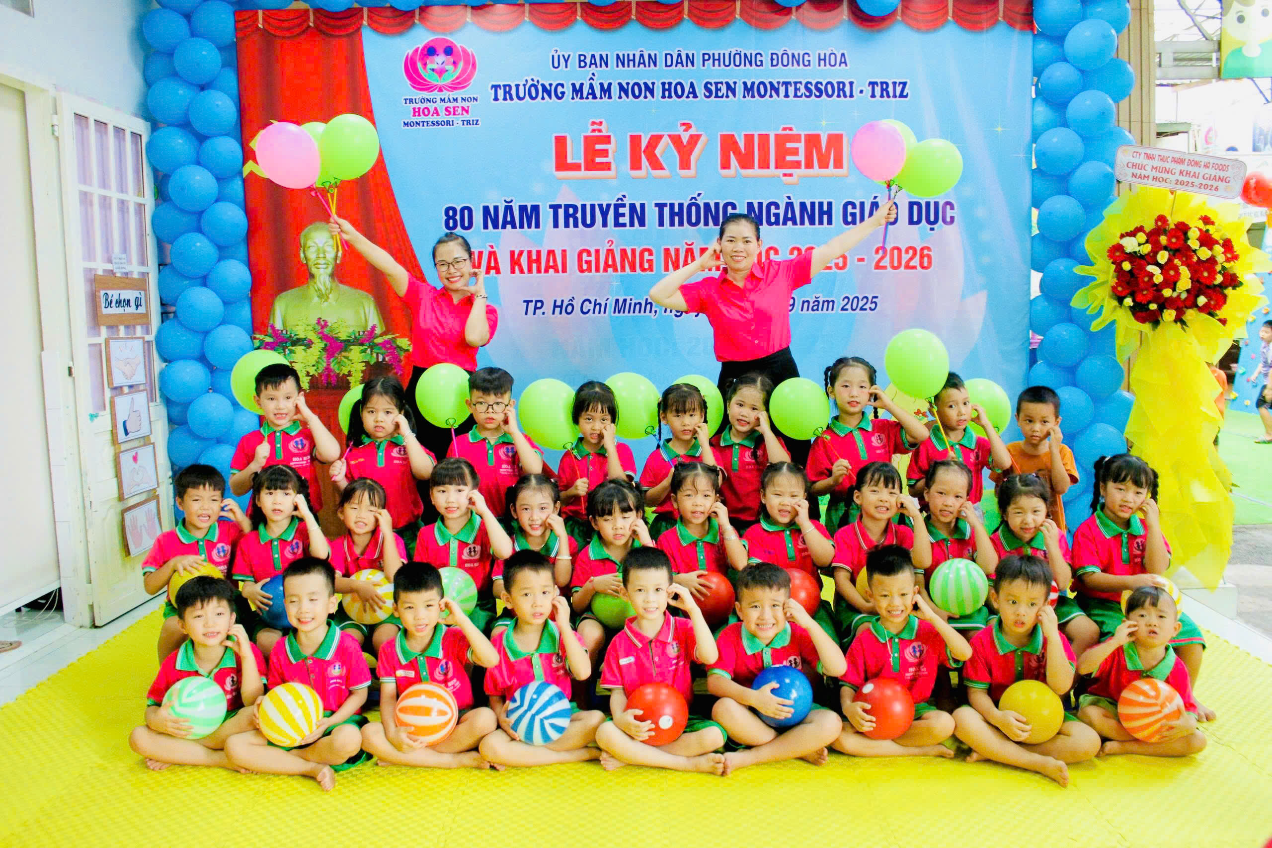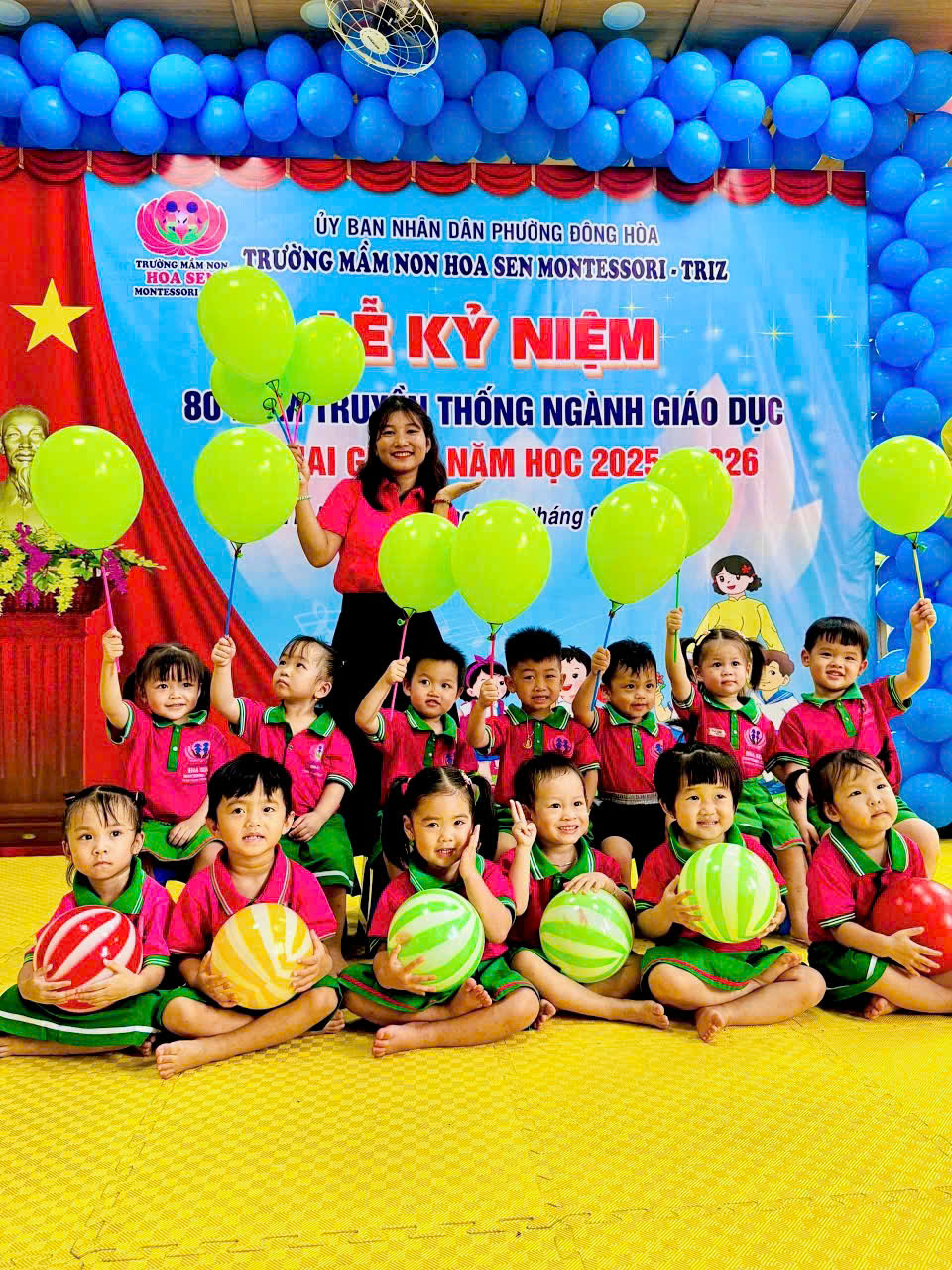 trong không khí hân hoan, ấm áp và đầy cảm xúc, tập thể giáo viên – phụ huynh – học sinh Trường Mầm non Hoa Sen Montessori – Triz đã long trọng tổ chức Lễ Kỷ niệm 80 năm ngày truyền thống ngành Giáo dục Việt Nam (1945 – 2025) kết hợp với Lễ Khai giảng năm học mới 2025 – 2026