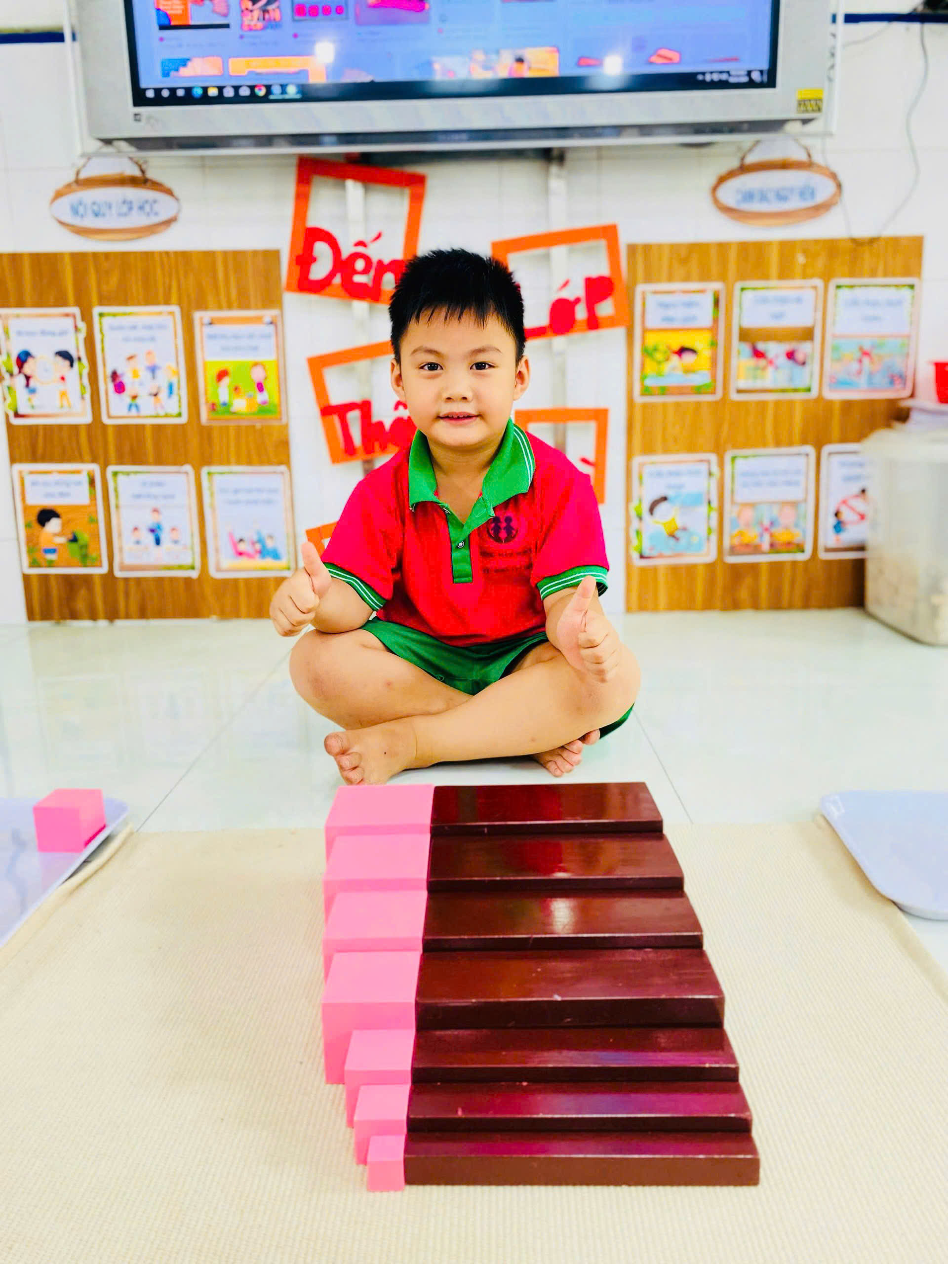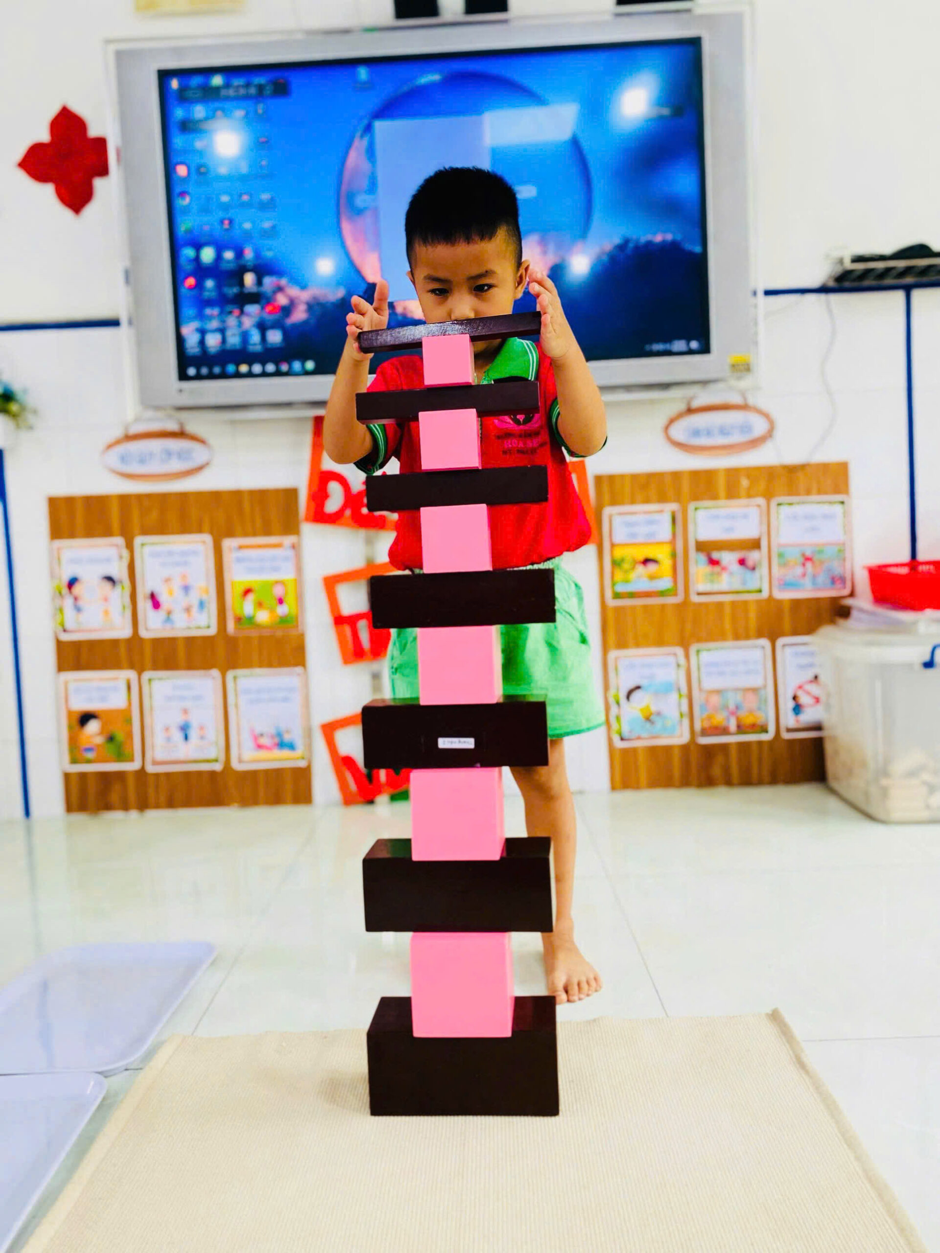 MÔN HỌC MONTESSORI VỚI BỘ THÁP HỒNG VÀ THANG NÂU